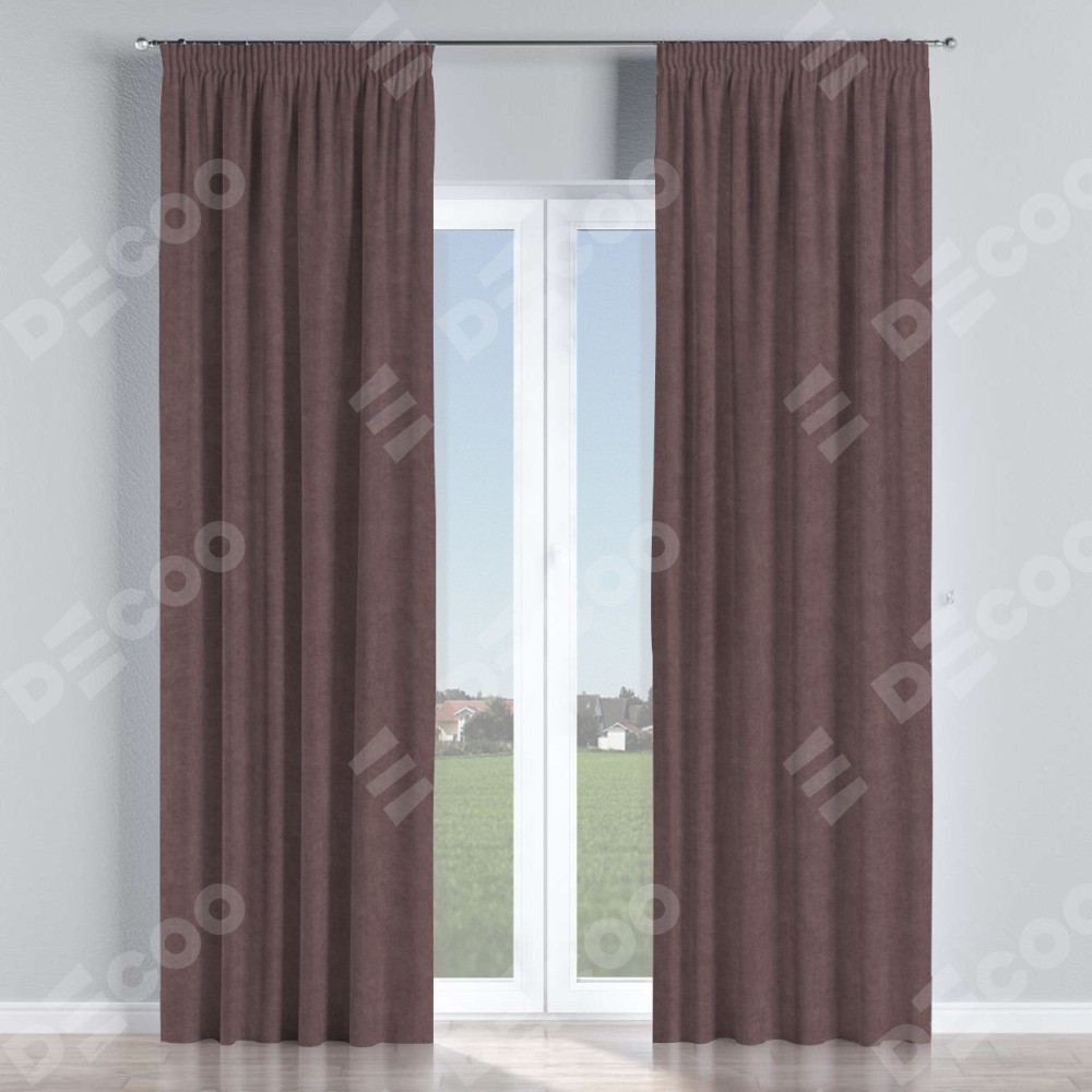 Комплект прямых штор, от производителя «Cortin», пошиты из ткани канвас махагон, артикул ткани v-37. С изнаночной стороны в верхней части штор пристрачивается шторная лента с декоративными складками «Карандаш». Для создания элегантных складок прямые шторы шьются по стандарту с коэффициентом 1:2 (на 100 см. ширины проёма 200 см. ширины ткани).