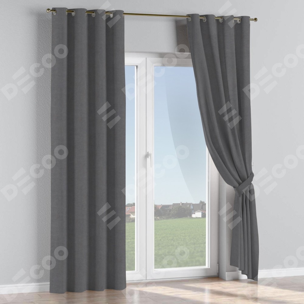 Комплект прямых штор, от производителя «Cortin», пошиты из ткани канвас мокрый асфальт, артикул ткани v-1083. Данная модель пошита на люверсах, комплектуется на выбор круглым карнизом и подходит для монтажа на стену или потолок. Прямые шторы на люверсах шьются по стандарту с коэффициентом 1/2 (на 100 см. ширины проёма 200 см. ширины ткани), отличительным преимуществом данной модели является простой способ монтажа. Достаточно повесить ее на трубу и штора готова!