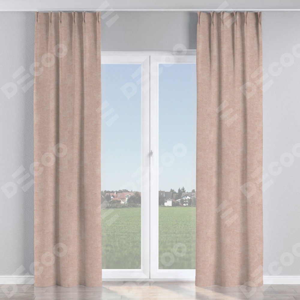 Комплект прямых штор, от производителя «Cortin», пошиты из ткани канвас пудровый, артикул ткани v-35. С изнаночной стороны в верхней части штор пристрачивается шторная лента с декоративными складками «Кустик». Для создания элегантных складок прямые шторы шьются по стандарту с коэффициентом 1:2 (на 100 см. ширины проёма 200 см. ширины ткани).