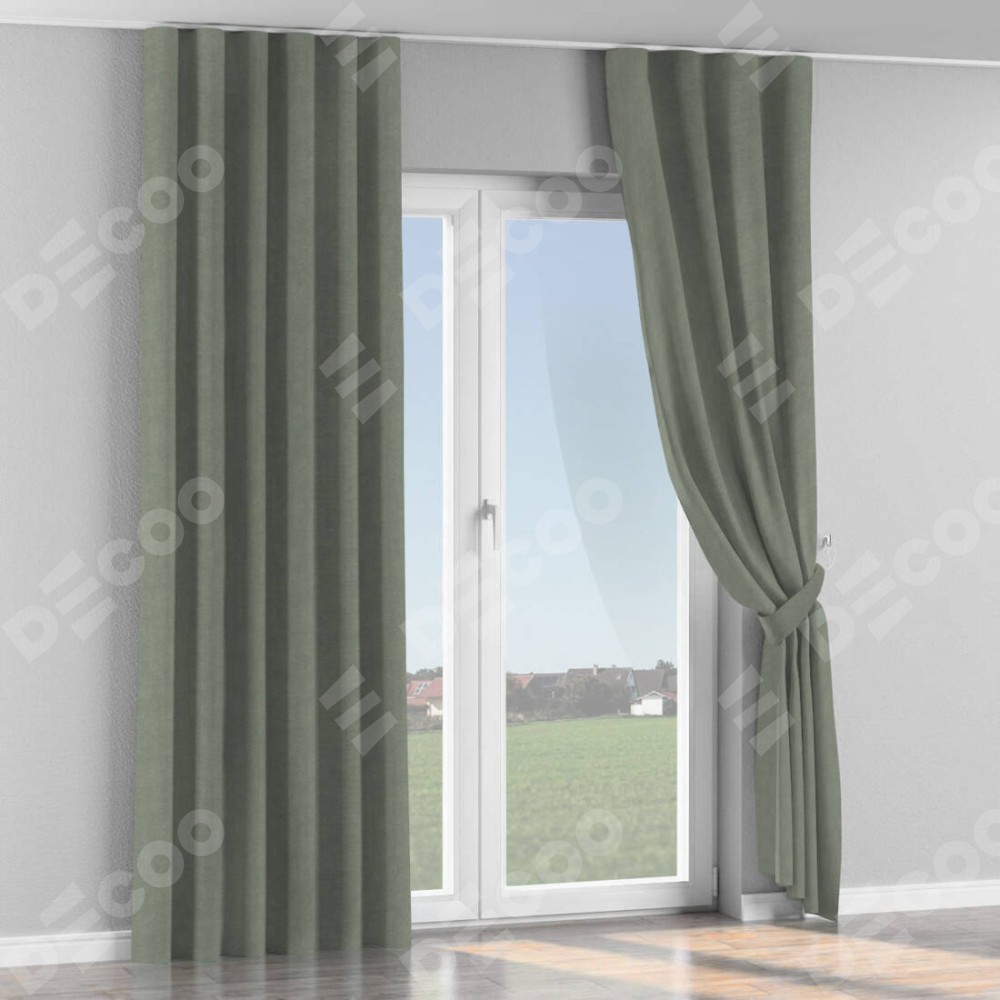 Комплект прямых штор, от производителя «Cortin», пошиты из ткани канвас сизый, артикул ткани v-1902. С изнаночной стороны в верхней части штор пристрачивается шторная лента с декоративными складками «Волна». Для создания элегантных складок прямые шторы шьются по стандарту с коэффициентом 1:2 (на 100 см. ширины проёма 200 см. ширины ткани).
