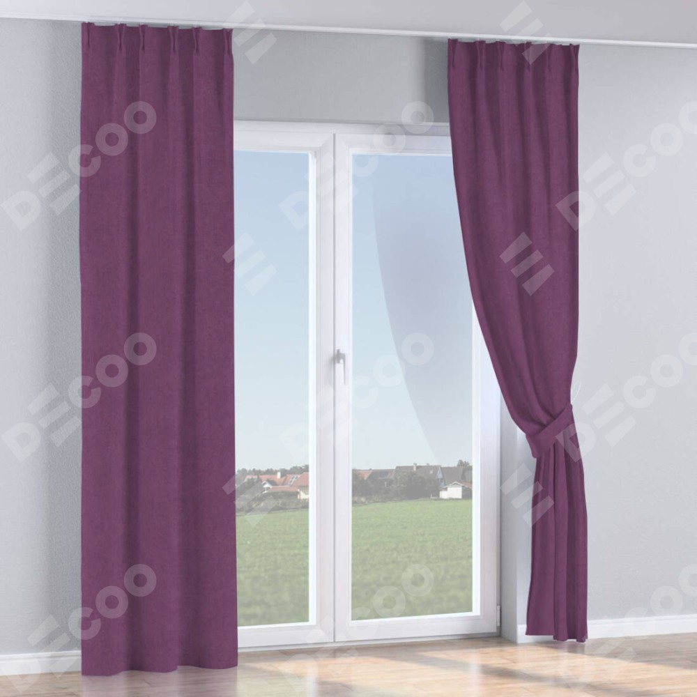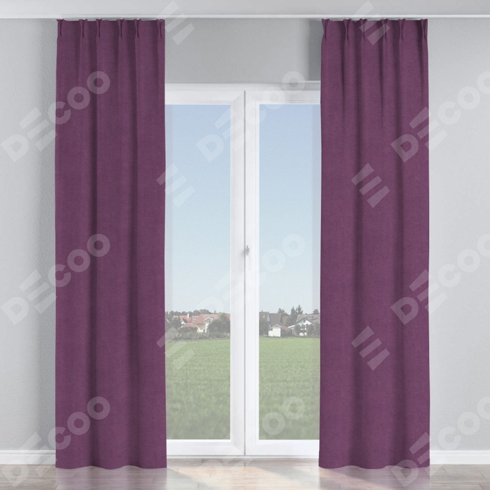 Комплект прямых штор, от производителя «Cortin», пошиты из ткани канвас сиреневый, артикул ткани v-98. С изнаночной стороны в верхней части штор пристрачивается шторная лента с декоративными складками «Кустик». Для создания элегантных складок прямые шторы шьются по стандарту с коэффициентом 1:2 (на 100 см. ширины проёма 200 см. ширины ткани).