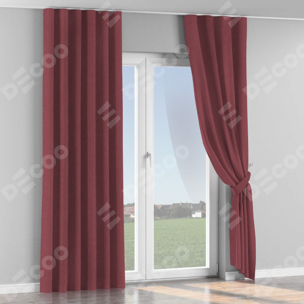 Комплект прямых штор, от производителя «Cortin», пошиты из ткани канвас ягодный, артикул ткани v-28. С изнаночной стороны в верхней части штор пристрачивается шторная лента с декоративными складками «Волна». Для создания элегантных складок прямые шторы шьются по стандарту с коэффициентом 1:2 (на 100 см. ширины проёма 200 см. ширины ткани).
