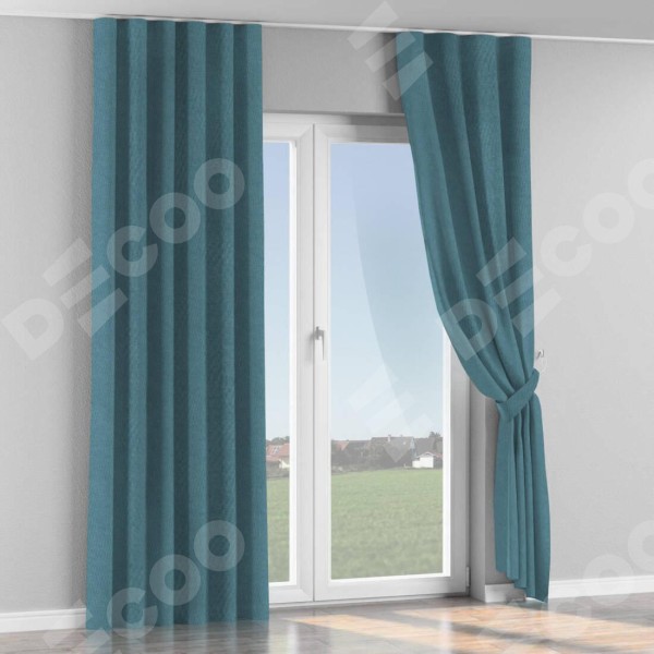Комплект прямых штор, от производителя «Cortin», пошиты из ткани лён димаут светло-синий, артикул ткани 91007. С изнаночной стороны в верхней части штор пристрачивается шторная лента с декоративными складками «Волна». Для создания элегантных складок прямые шторы шьются по стандарту с коэффициентом 1:2 (на 100 см. ширины проёма 200 см. ширины ткани).