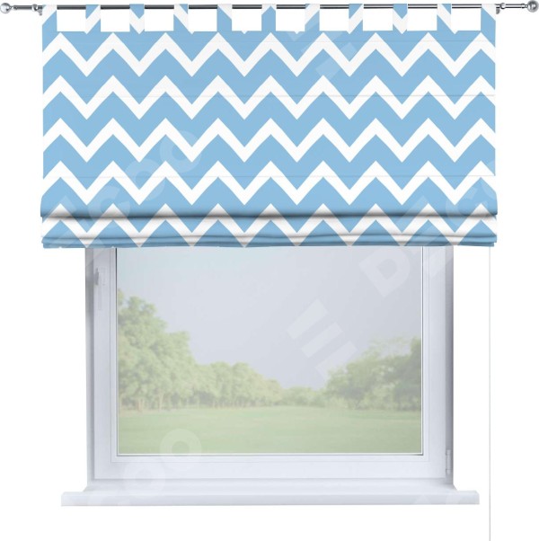 Римская штора производителя «Cortin», используется для проёма, пошита из ткани блэкаут с нанесением сублимационной печати «Зигзаг средний». Данная модель пошита на петлях, комплектуется на выбор круглым карнизом и подходит для монтажа на стену. Римская штора на петлях имеет простую систему регулировки высоты, отличительным преимуществом данной модели является простой способ монтажа. Достаточно повесить ее на трубу и штора готова!