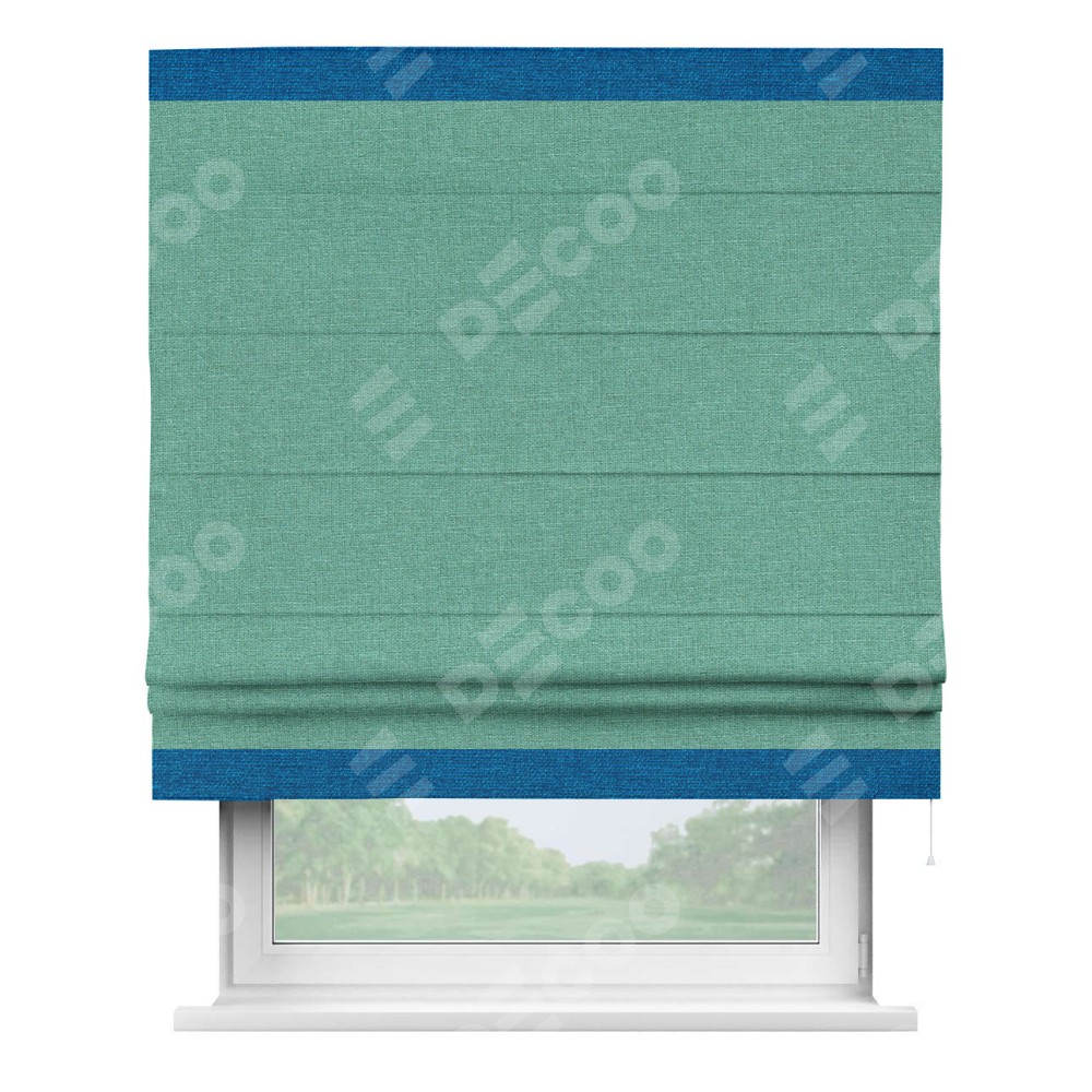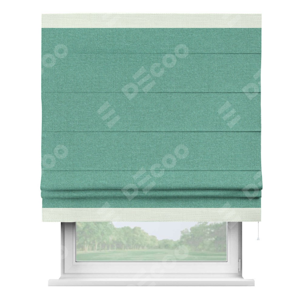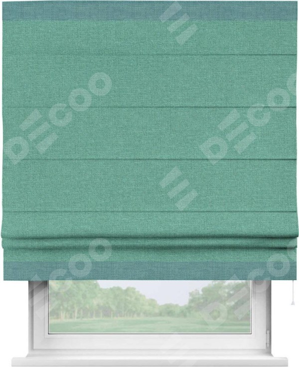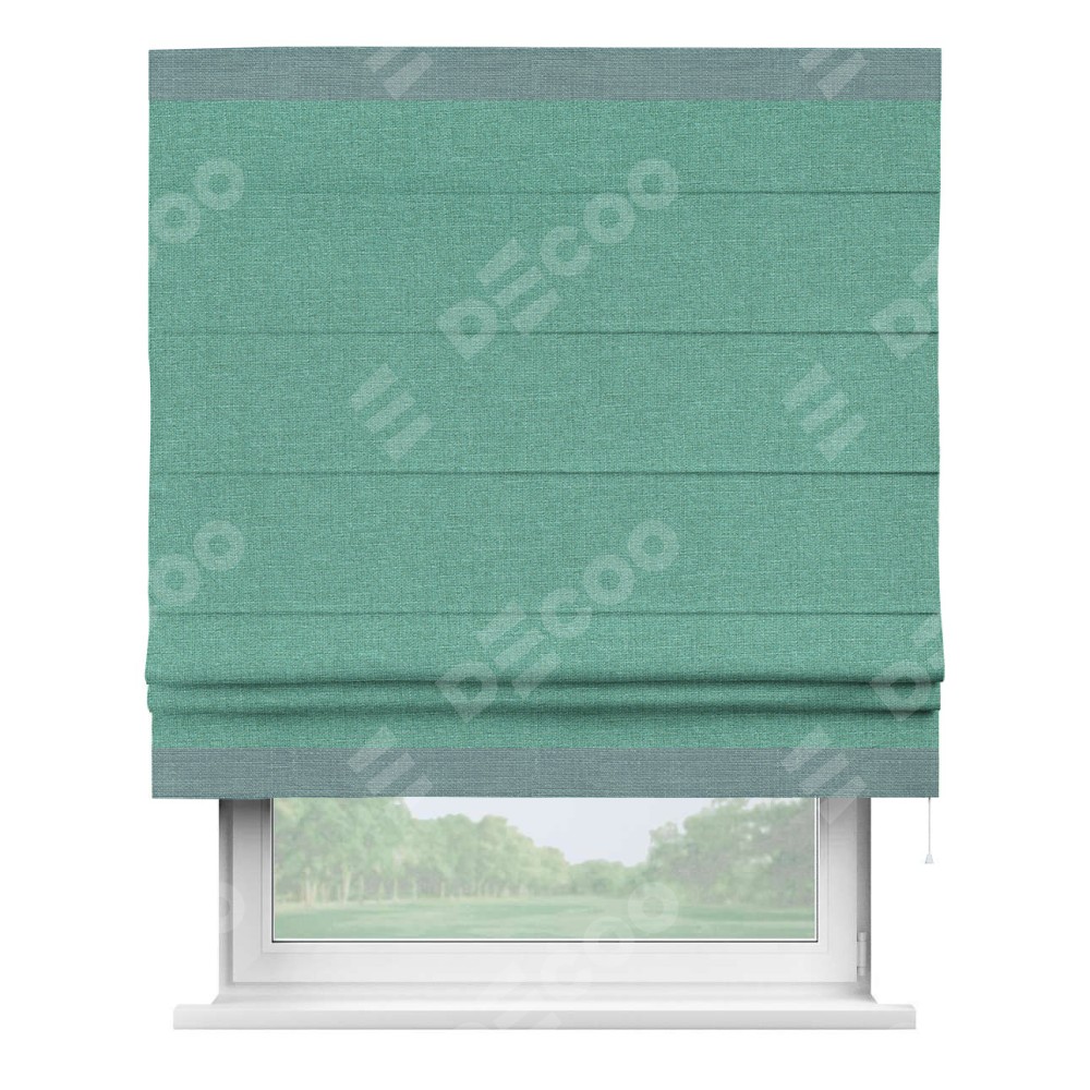 Римская штора «Кортин» с кантом Горизонт, для проема, лён светло-бирюзовый
