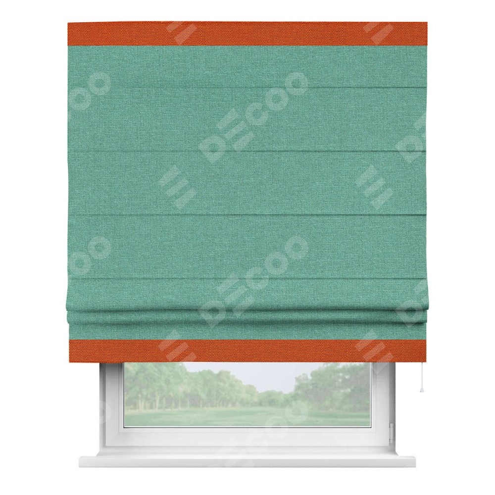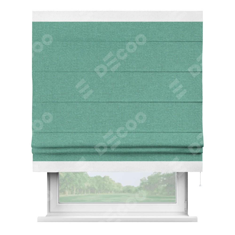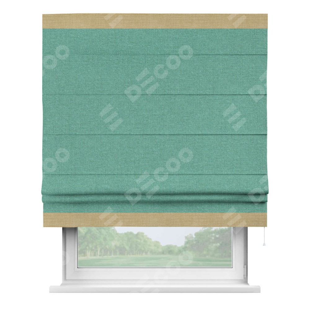 Римская штора «Кортин» с кантом Горизонт, для проема, лён светло-бирюзовый