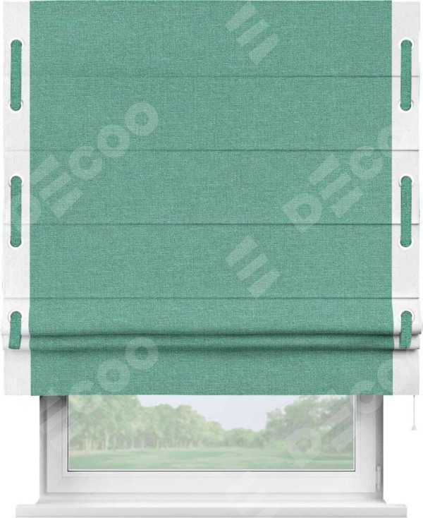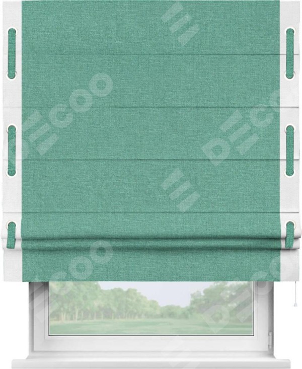 Римская штора «Кортин» с кантом Стрим Дуо (люверсы с пояском), для проема, лён светло-бирюзовый