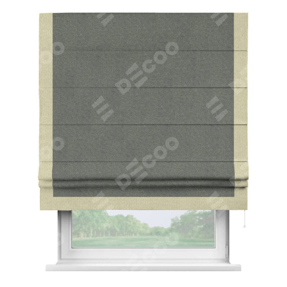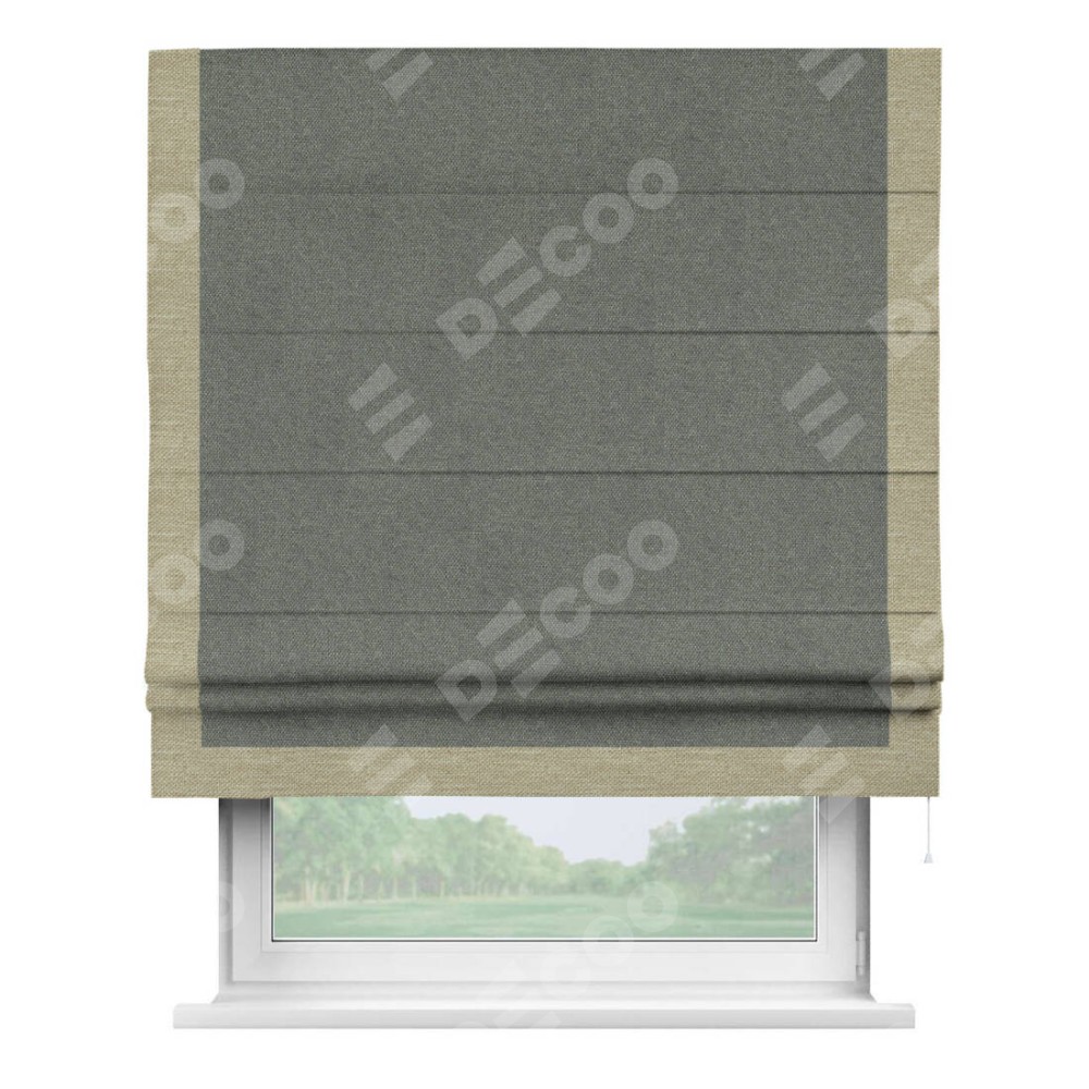 Римская штора «Кортин» с кантом Виктория, для проема, ткань лён димаут, тёмно-серый