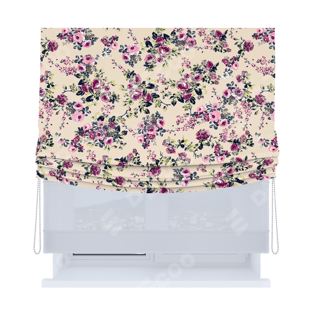 Римская штора «Кортин», день-ночь с мягкими складками, «Россыпь розовых цветов»
