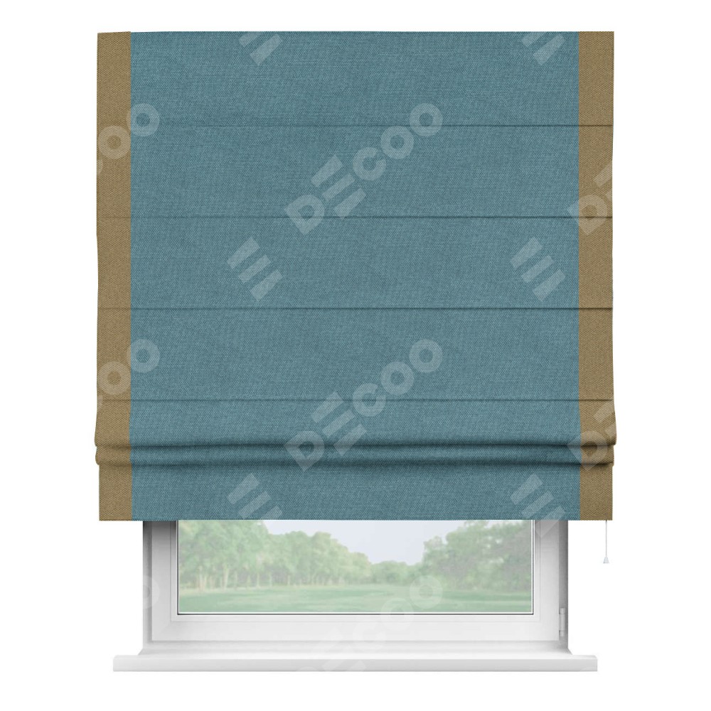Римская штора «Кортин» для проема, лён димаут светло-синий с кантом Стрим Дуо