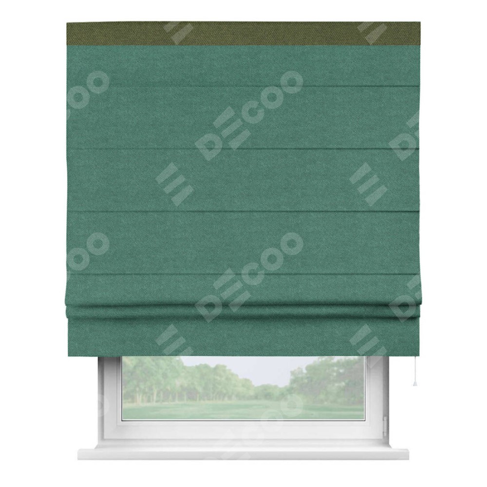 Римская штора «Кортин» для проема, лён димаут светло-бирюзовый с кантом Кинг