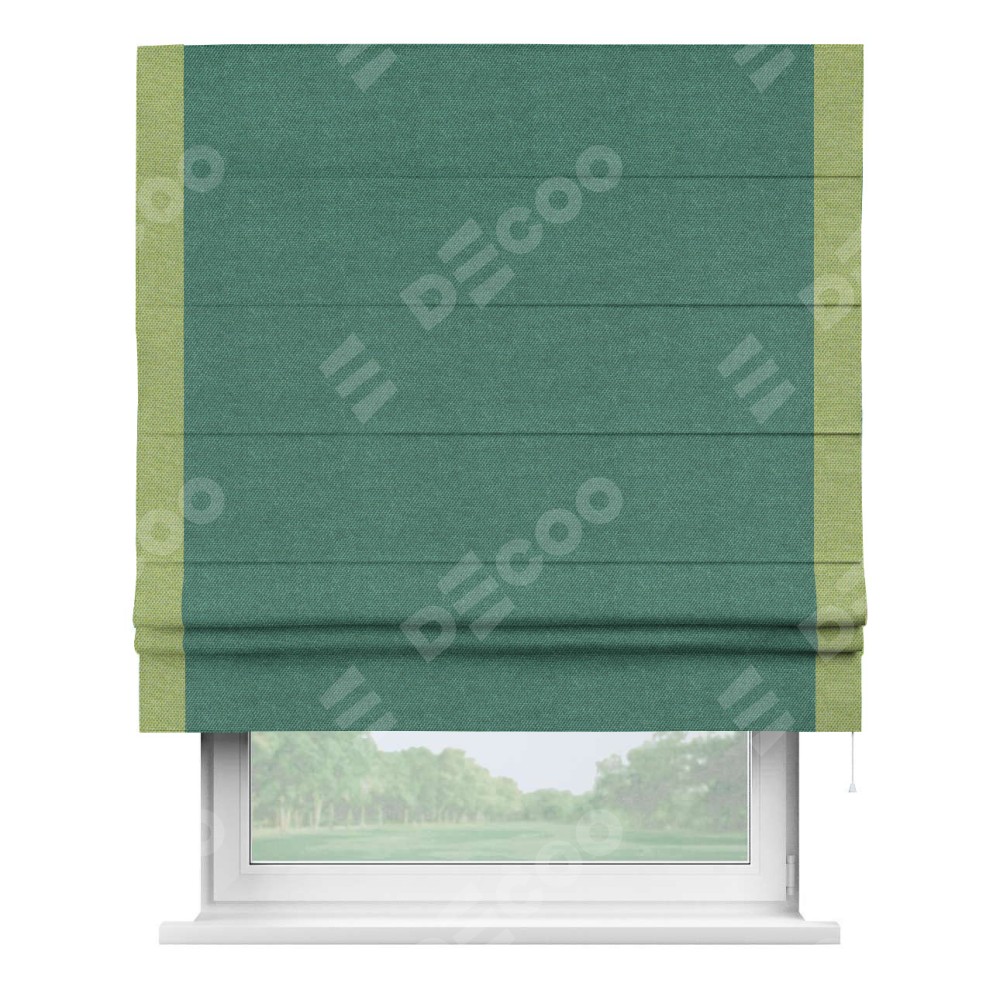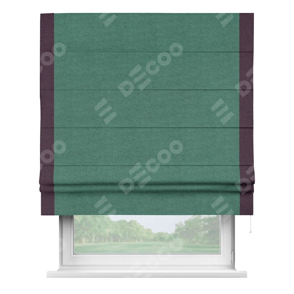 Римская штора «Кортин» для проема, лён димаут светло-бирюзовый с кантом Стрим Дуо
