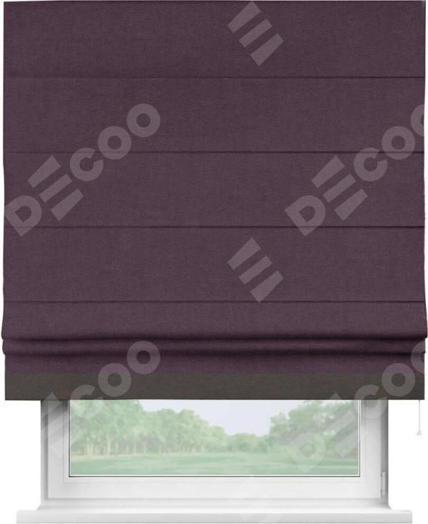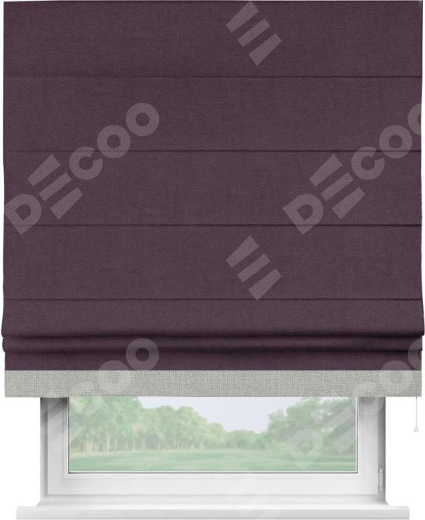 Римская штора «Кортин» для проема, лён димаут фиолетовый с кантом Джестер