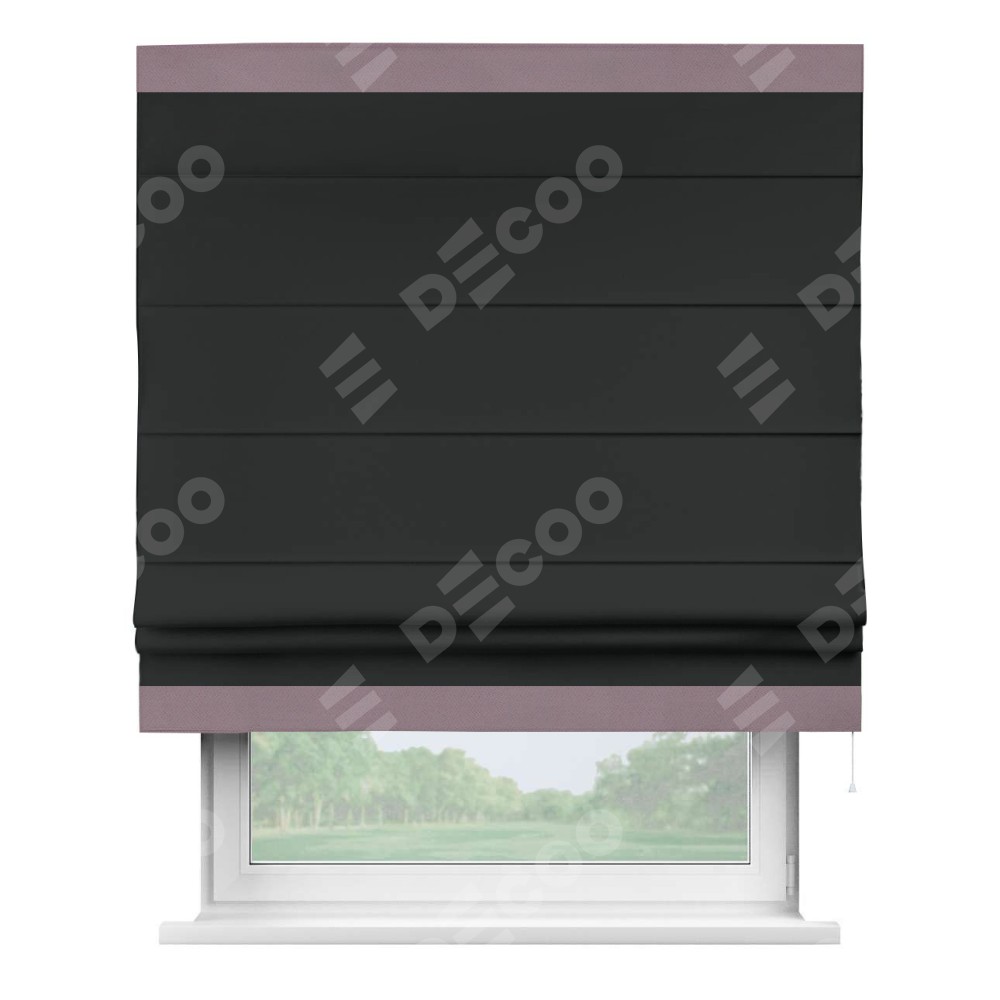 Римская штора производителя «Cortin», используется для проёма, пошита из ткани блэкаут однотонный черный, артикул ткани 91571−2. Отделка шторы кантом «Горизонт», ткань для канта используется из блэкаута однотонного разной расцветки на выбор. Имеет универсальный механизм и подходит для монтажа: на потолок, на стену и в нишу.