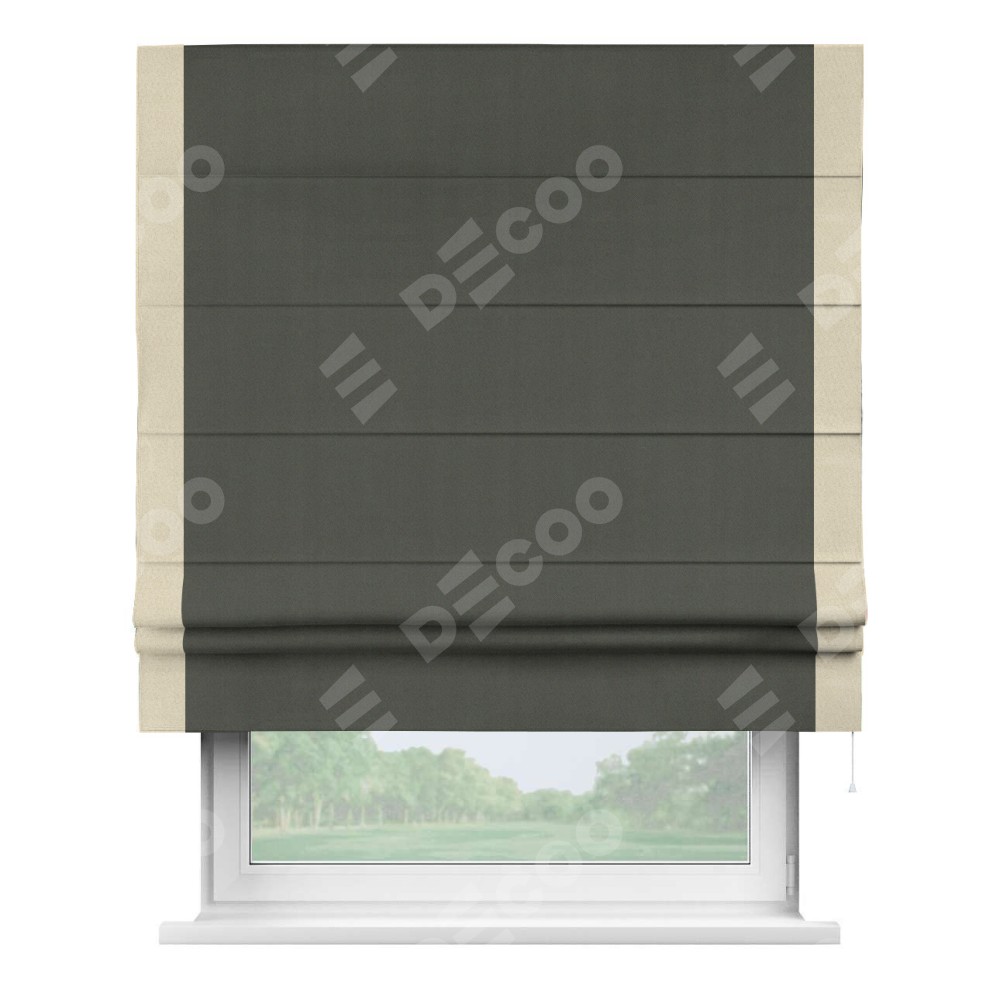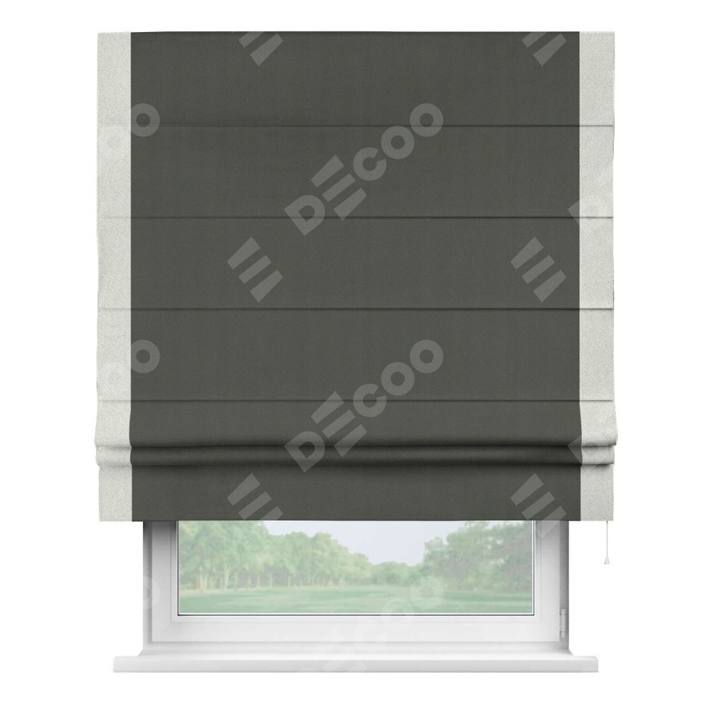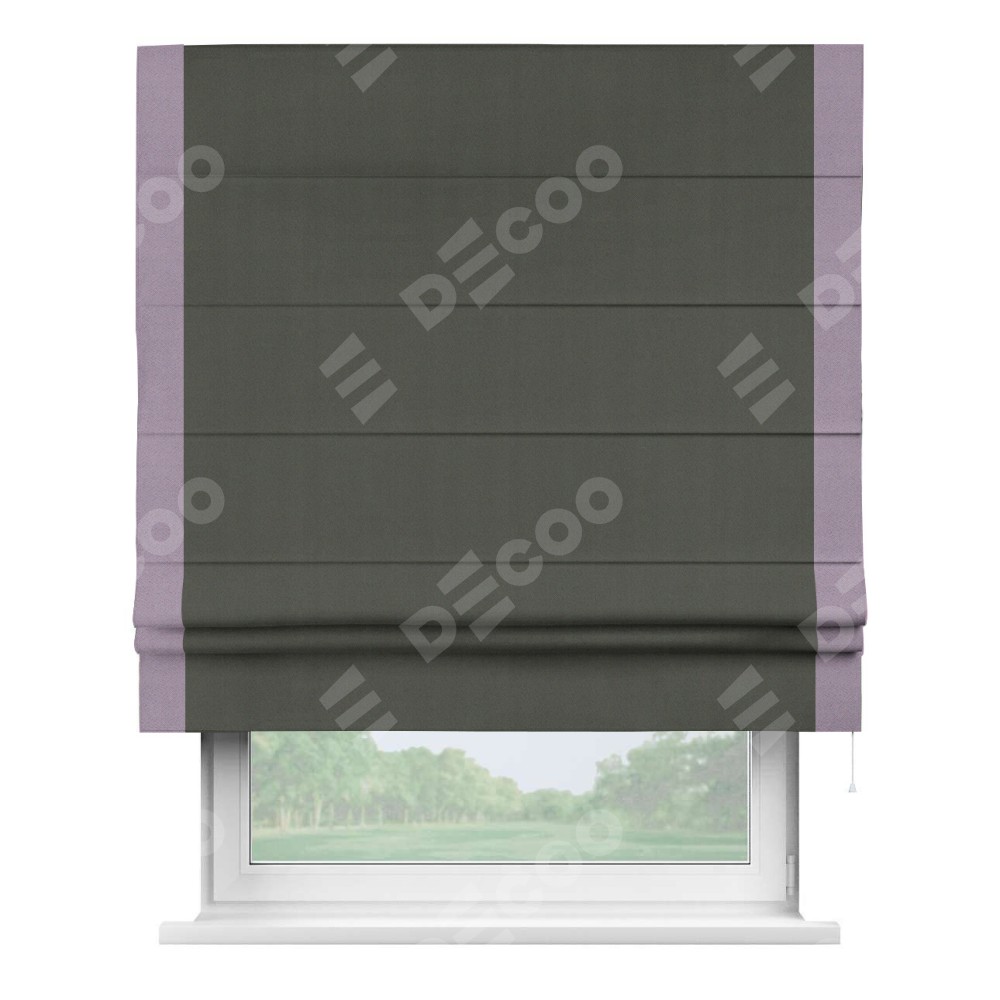 Римская штора «Кортин» для проема, блэкаут однотонный дымчато-серый с кантом Стрим Дуо