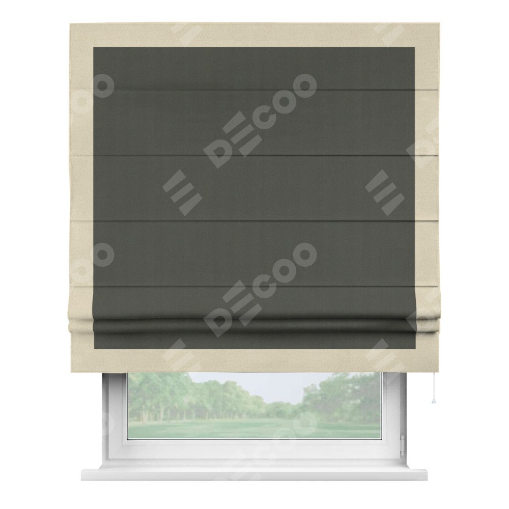 Римская штора «Кортин» для проема, блэкаут однотонный дымчато-серый с кантом Чесс