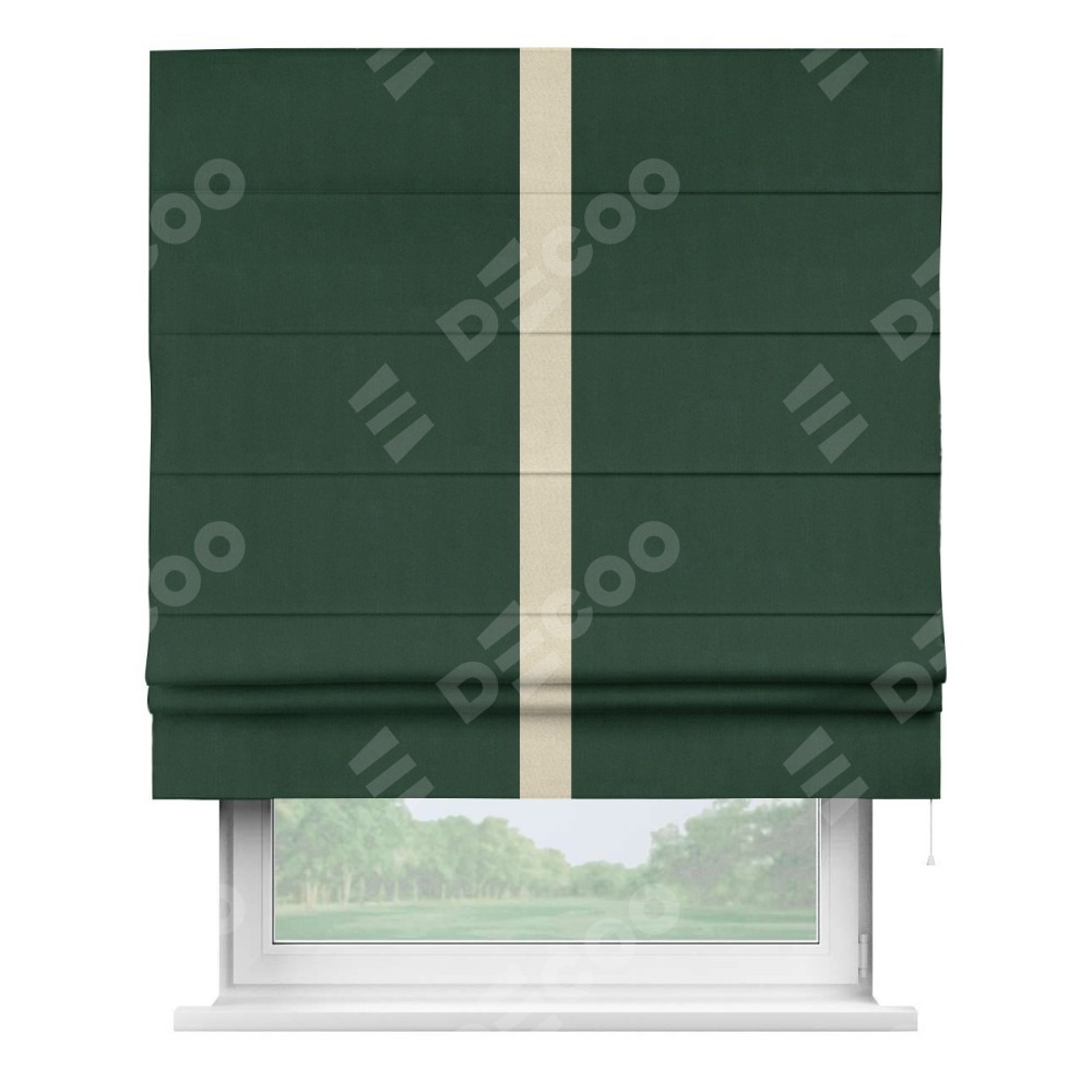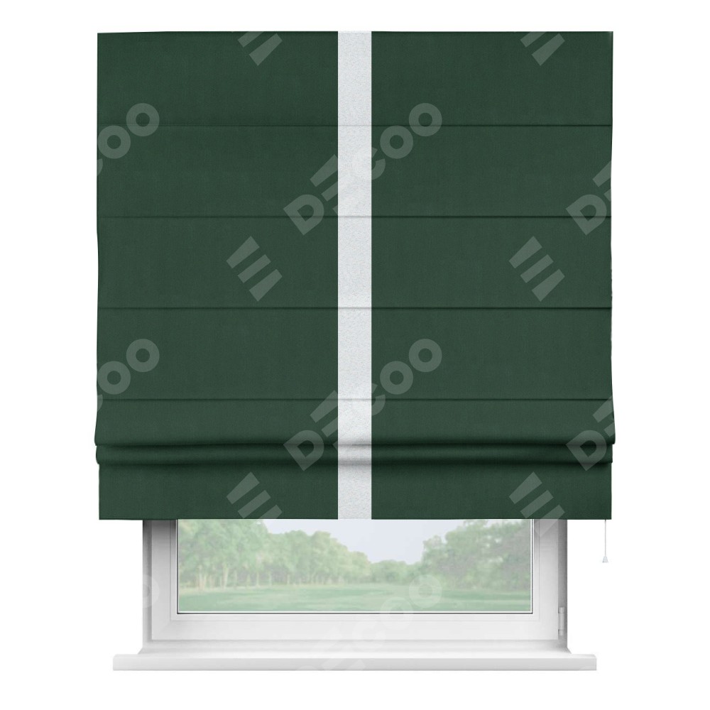 Римская штора «Кортин» для проема, блэкаут однотонный зелёный с кантом Хайвэй