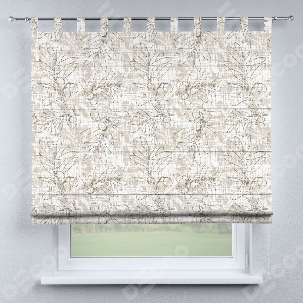 Римская штора производителя «Cortin», используется для проёма, пошита из ткани блэкаут с нанесением сублимационной печати «Ветви оливы». Данная модель пошита на петлях, комплектуется на выбор круглым карнизом и подходит для монтажа на стену. Римская штора на петлях имеет простую систему регулировки высоты, отличительным преимуществом данной модели является простой способ монтажа. Достаточно повесить ее на трубу и штора готова!