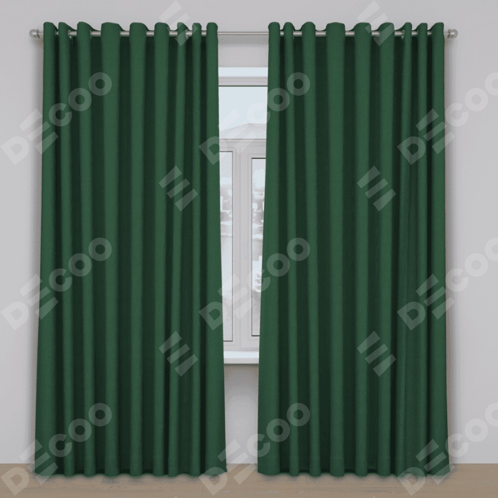 Шторы на люверсах лён димаут, тёмно-зелёный