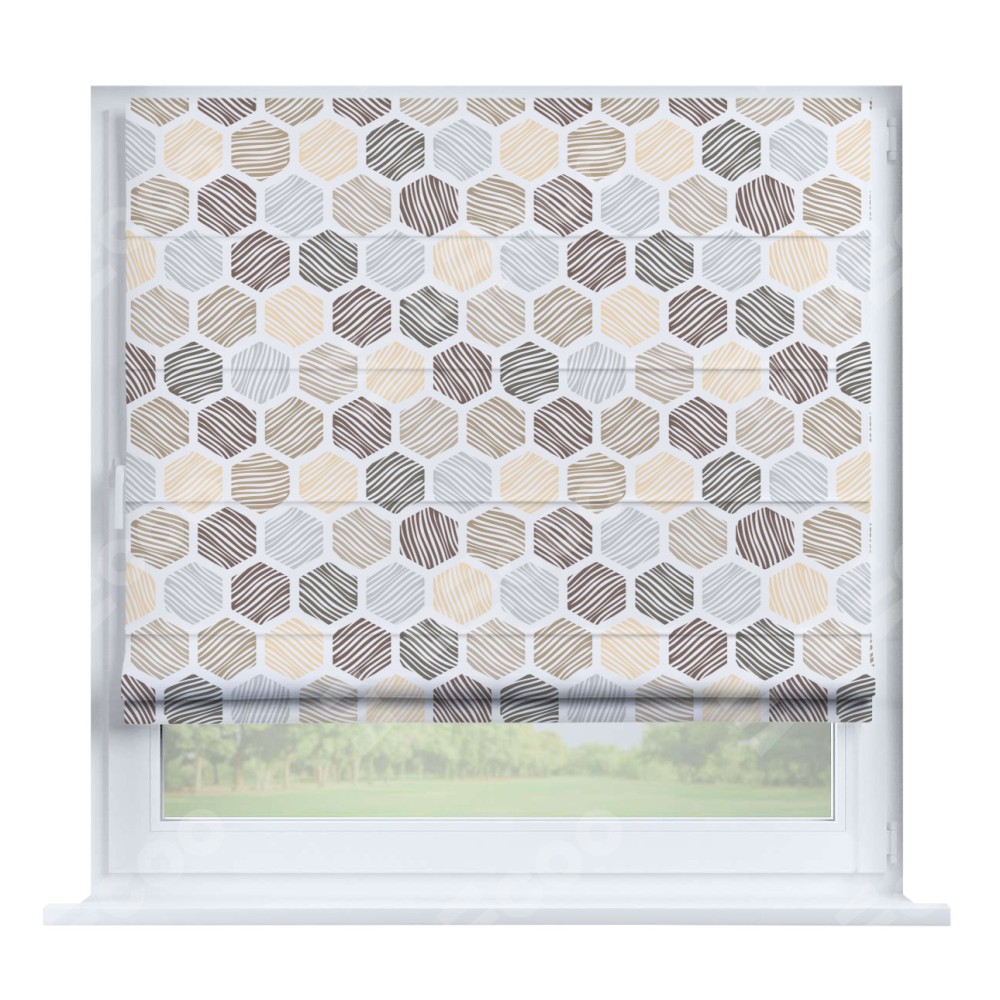 Римская штора производителя «Cortin», устанавливается на створку окна, пошита из ткани блэкаут с нанесением сублимационной печати «Мозаика соты». Штора шьётся по индивидуальным размерам, для данного типа римской шторы возможная ширина от 35 до 150 см., высота до 250 см.