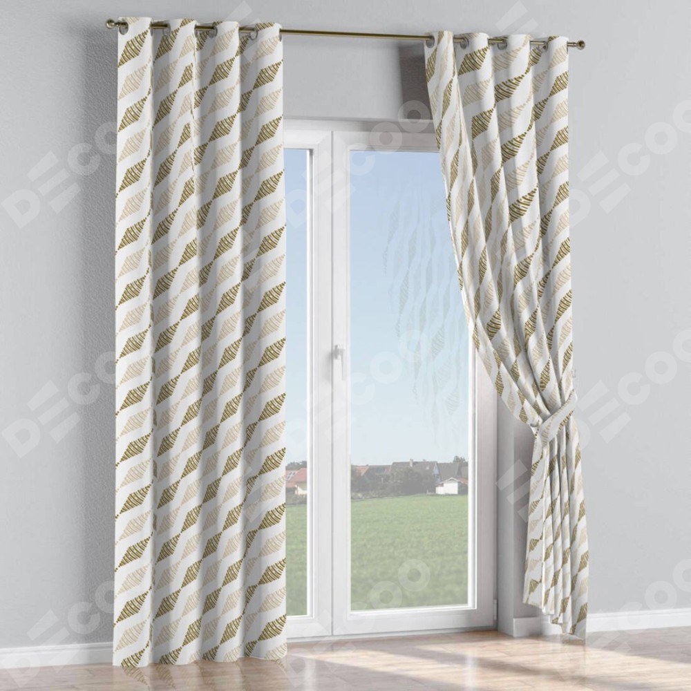 Длина карниза равна ширине окна плюс 30 — 50 см. При расчете длины штанги наконечники не учитываются. Для определения высоты штор измерьте расстояние от верхнего края карниза до пола и отнимите 1 см. Прибавьте 4 см  (гребешок над люверсом) Это габаритный размер вашего изделия.