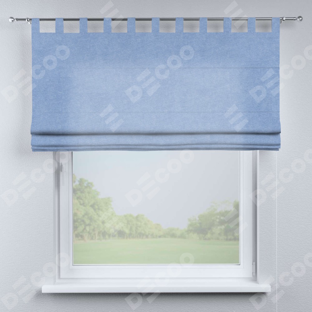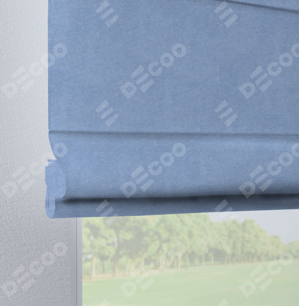 Римская штора на петлях «Кортин», ткань вельвет васильковый