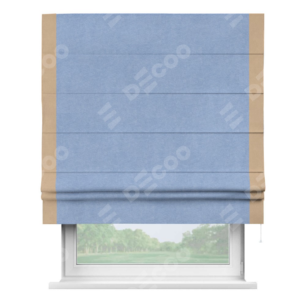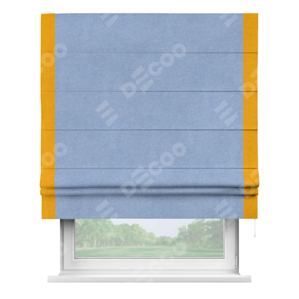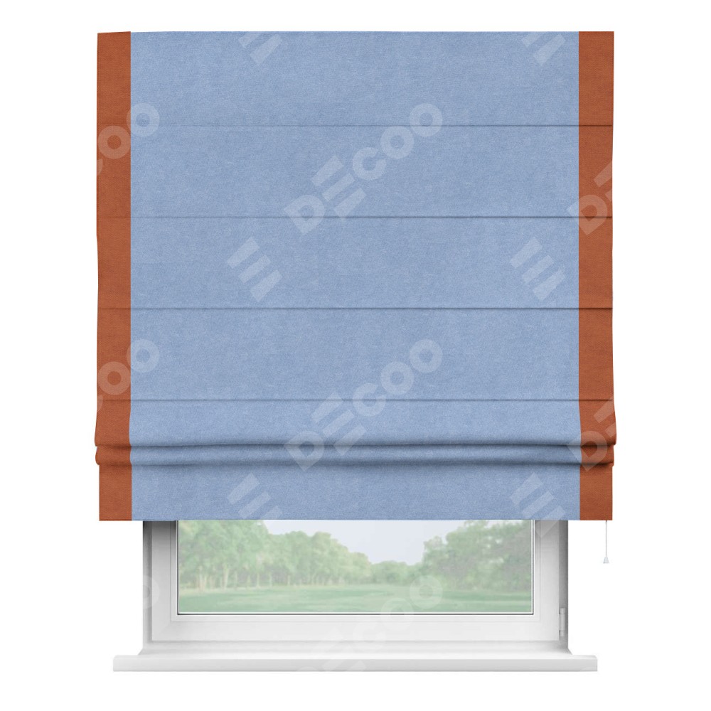 Римская штора «Кортин» для проема, вельвет васильковый с кантом Стрим Дуо