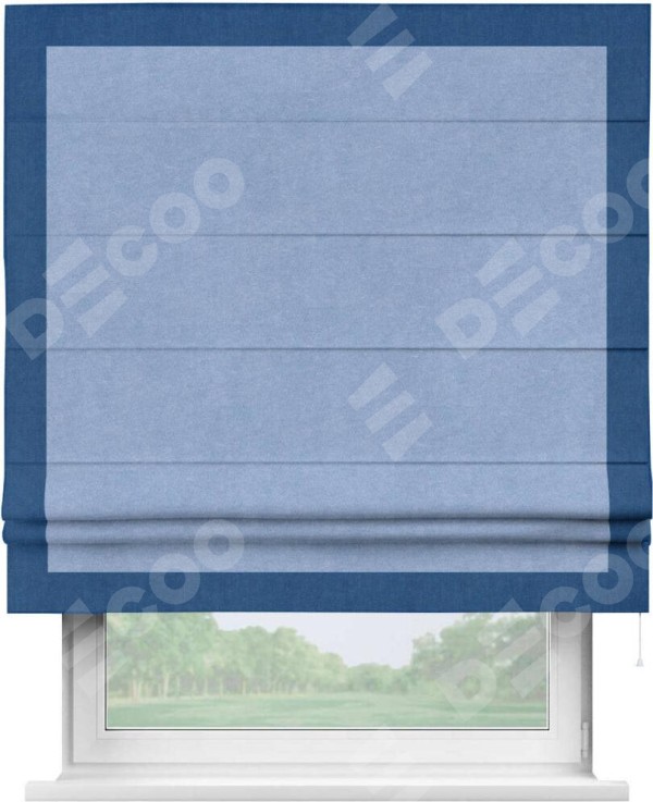 Римская штора «Кортин» для проема, вельвет васильковый с кантом Чесс