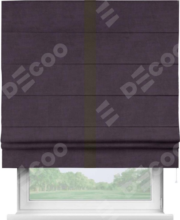 Римская штора «Кортин» для проема, вельвет тёмно-фиолетовый с кантом Хайвэй