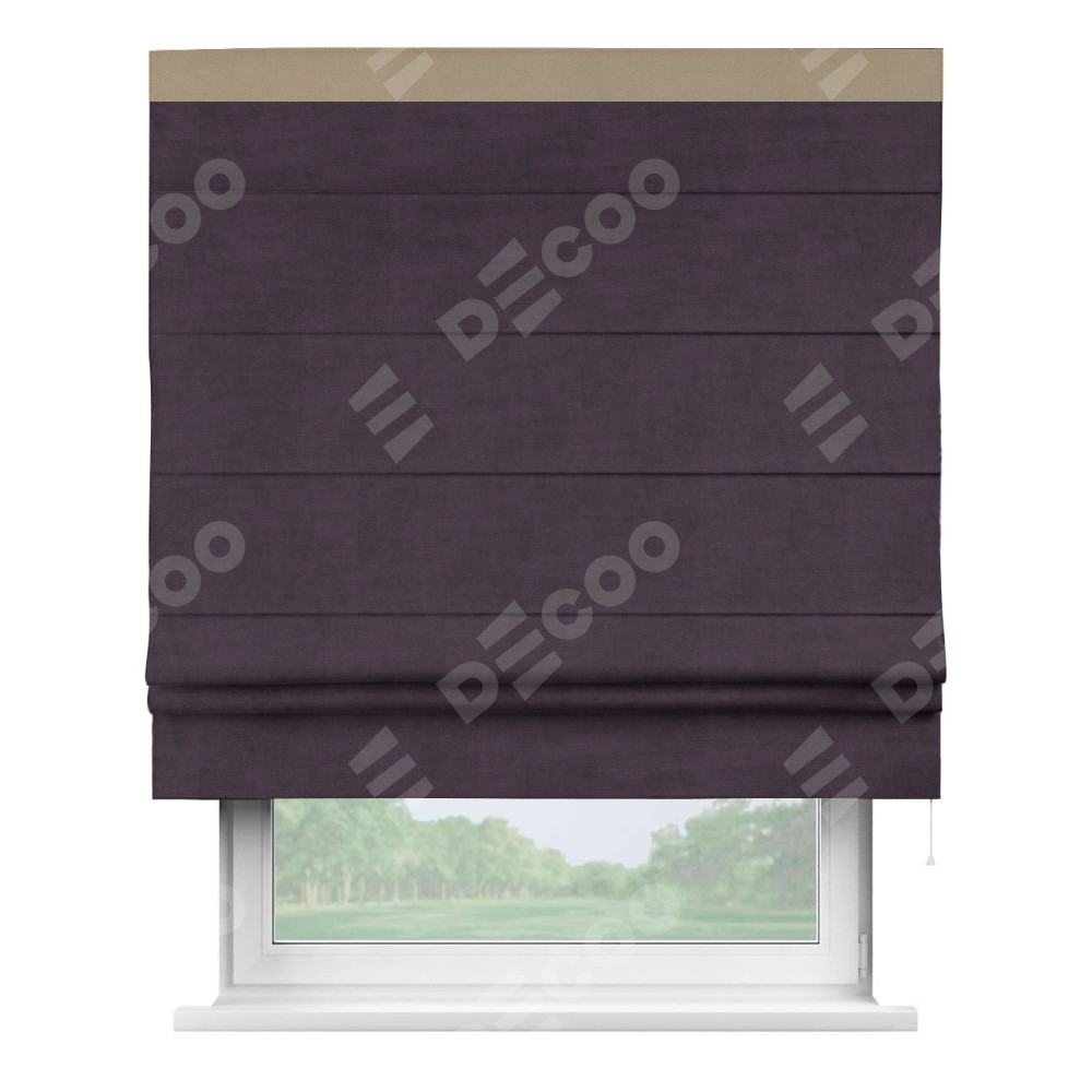 Римская штора «Кортин» для проема, вельвет тёмно-фиолетовый с кантом Кинг