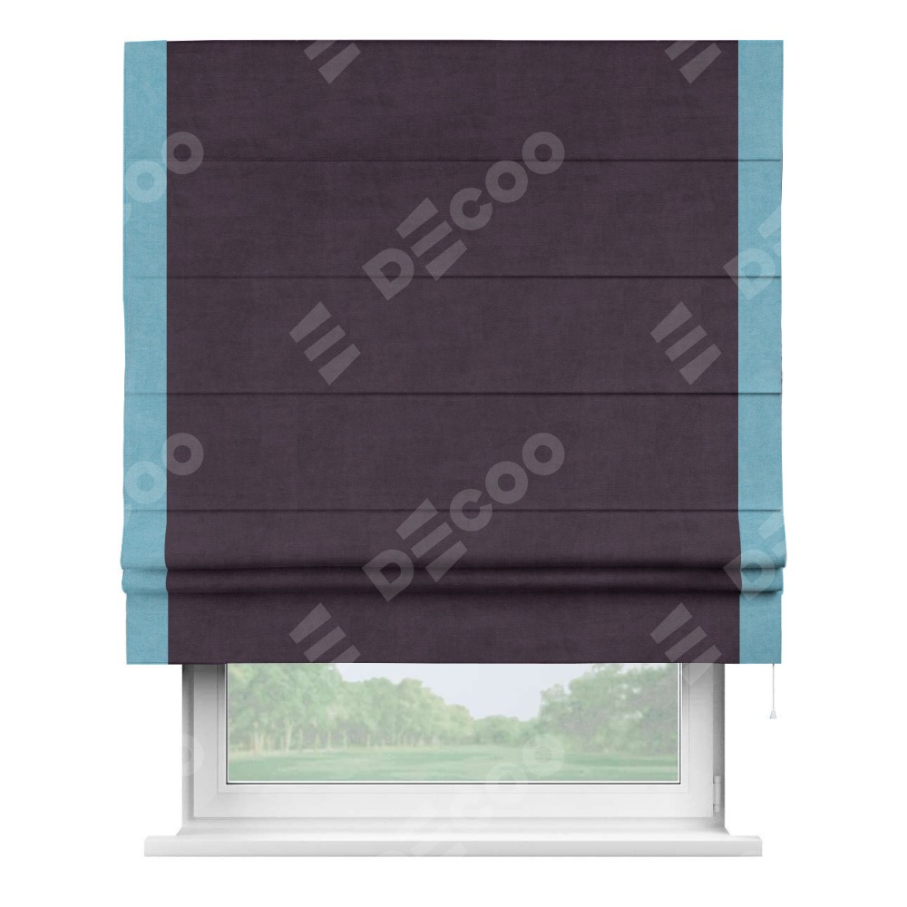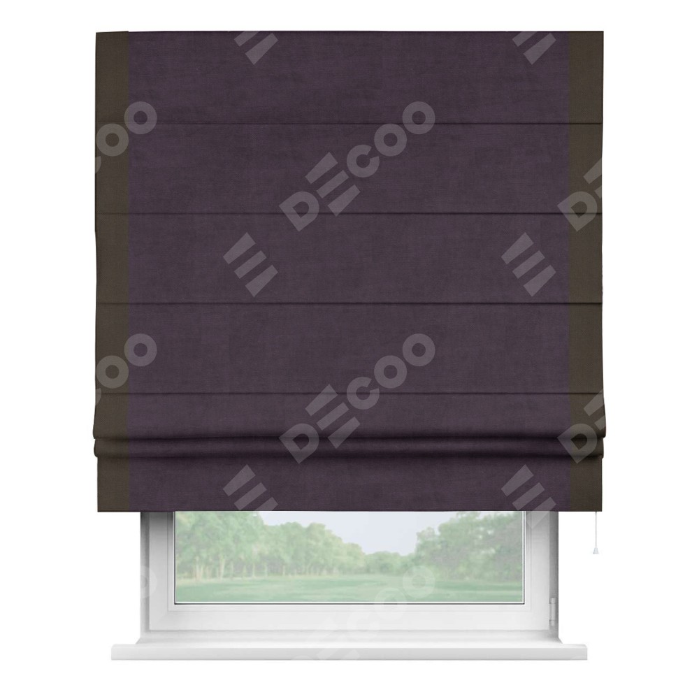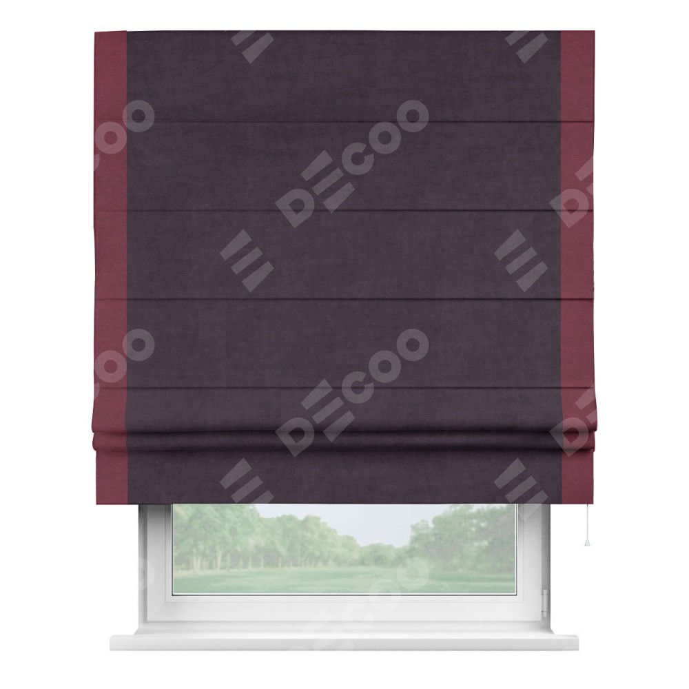 Римская штора «Кортин» для проема, вельвет тёмно-фиолетовый с кантом Стрим Дуо