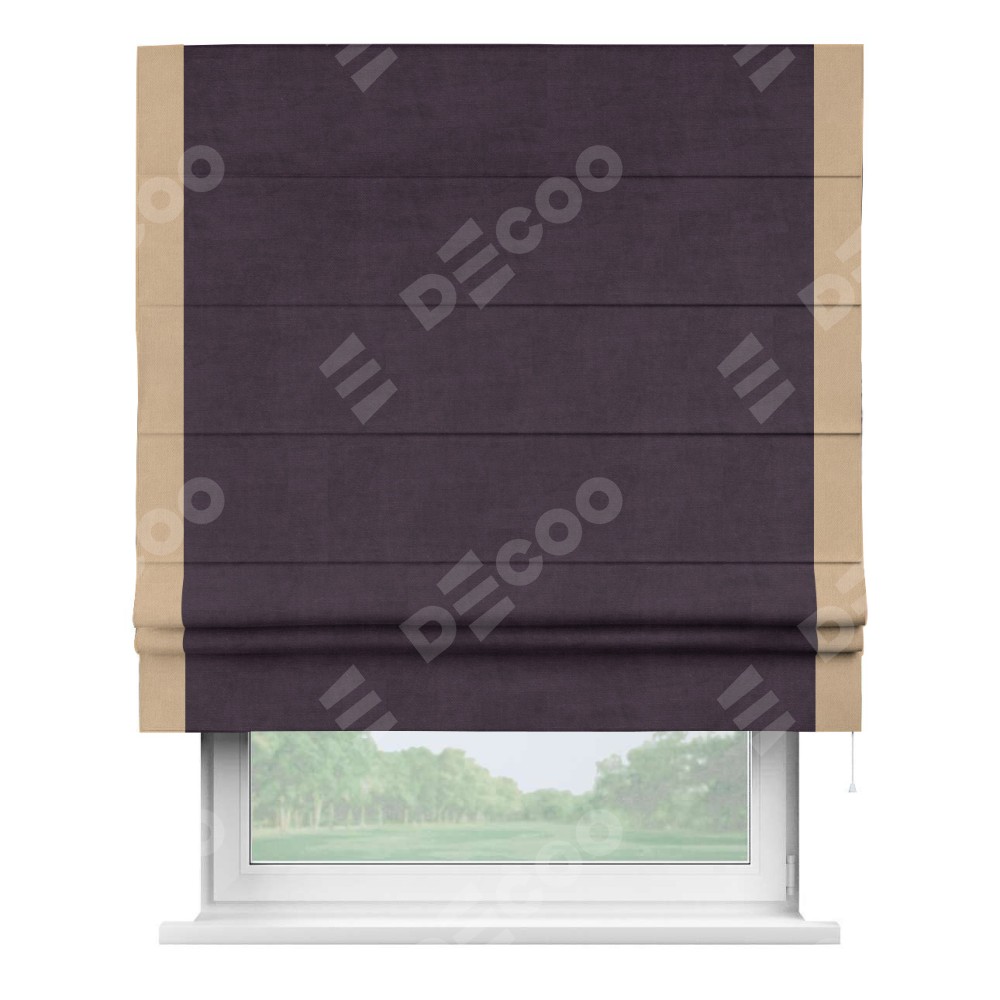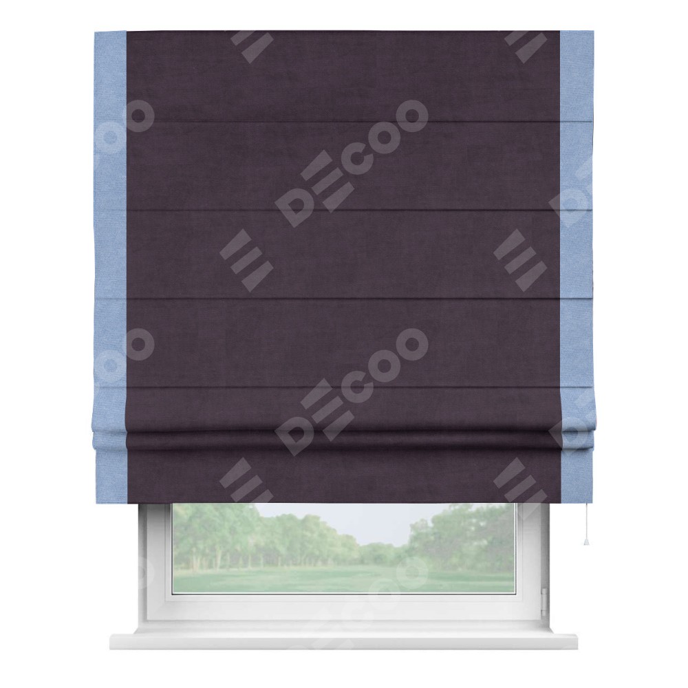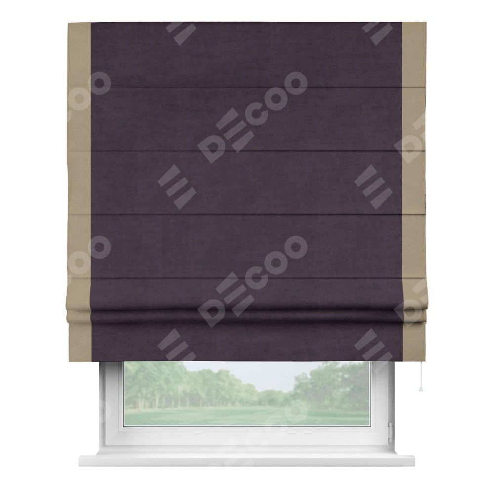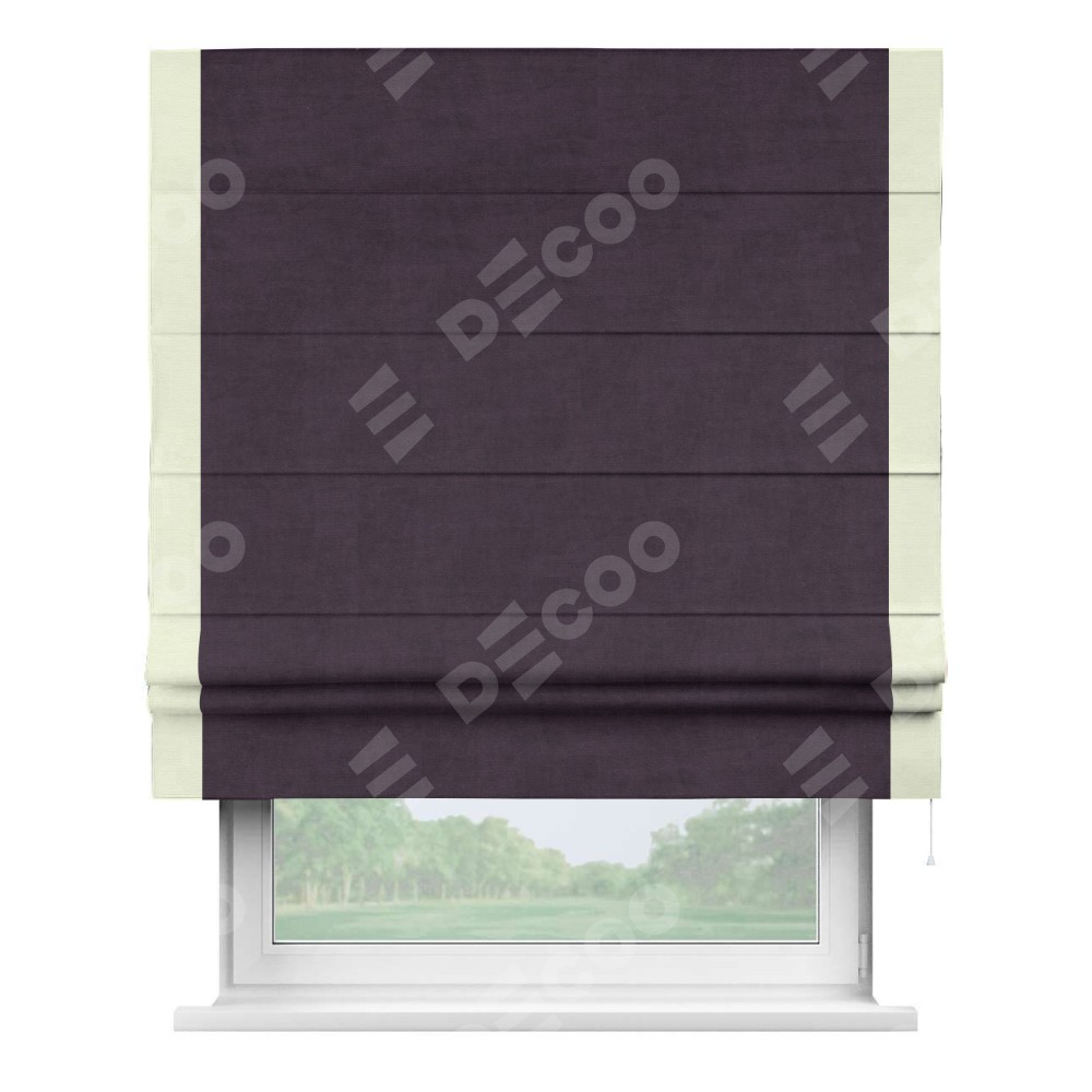 Римская штора «Кортин» для проема, вельвет тёмно-фиолетовый с кантом Стрим Дуо