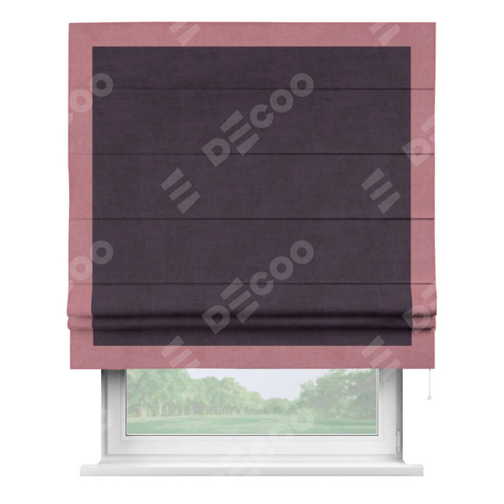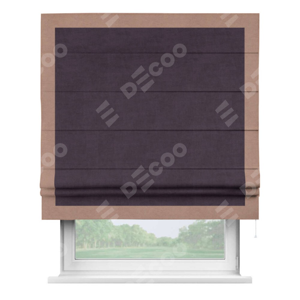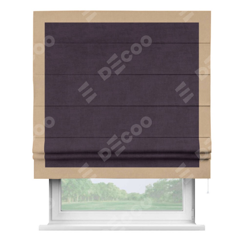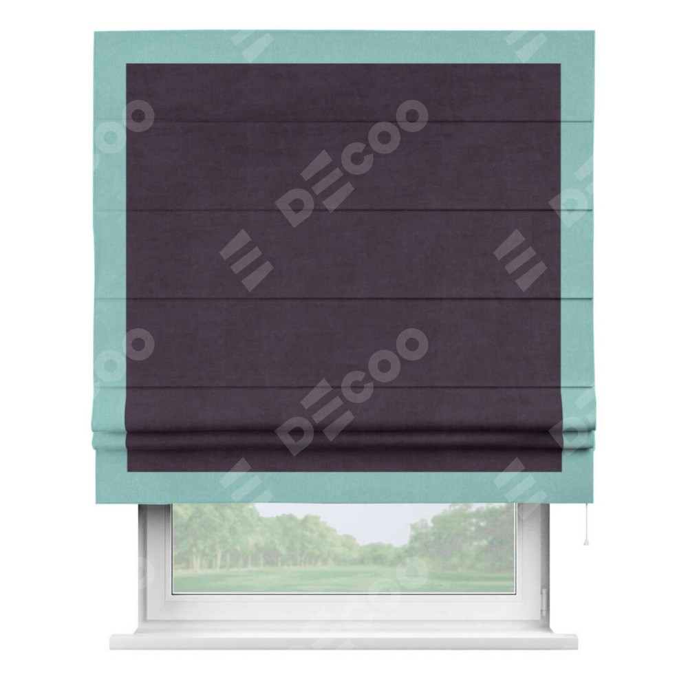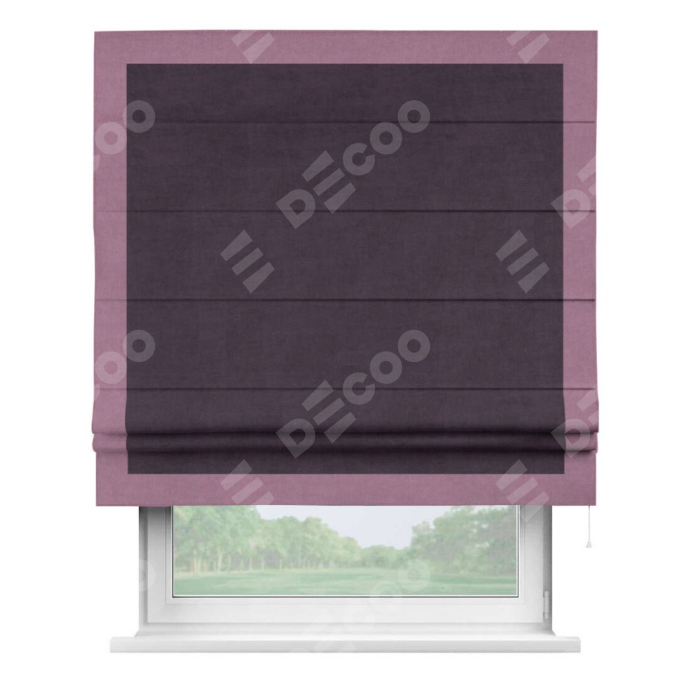 Римская штора «Кортин» для проема, вельвет тёмно-фиолетовый с кантом Чесс