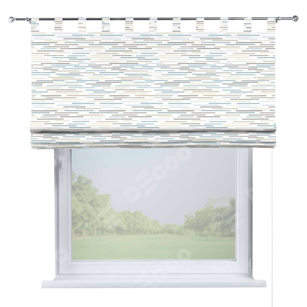 У римских штор может быть несколько креплений, вот наиболее распространенные: карниз, на липучке, на люверсах (металлические или пластиковые кольца), на петлях.