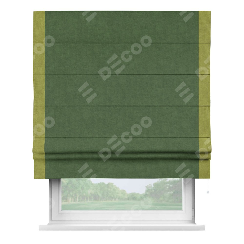 Римская штора «Кортин» для проема, канвас зелёный, с кантом Стрим Дуо