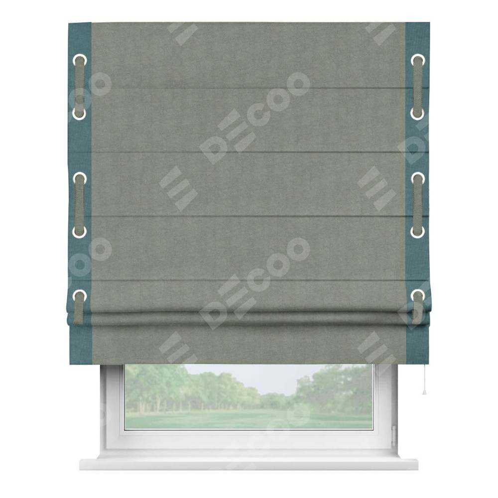 Римская штора «Кортин» для проема, канвас сизый, с кантом Стрим Дуо (люверсы с пояском)