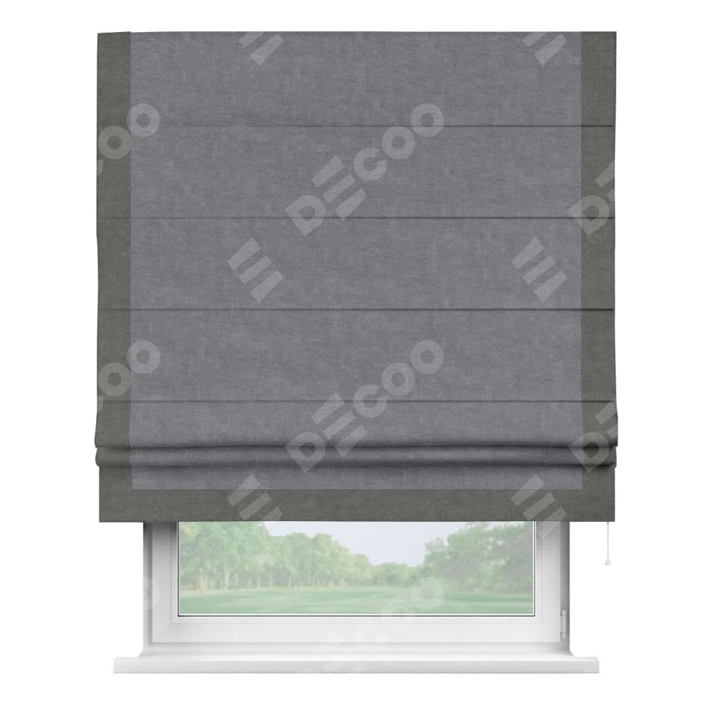 Римская штора «Кортин» для проема, канвас стальной, с кантом Виктория