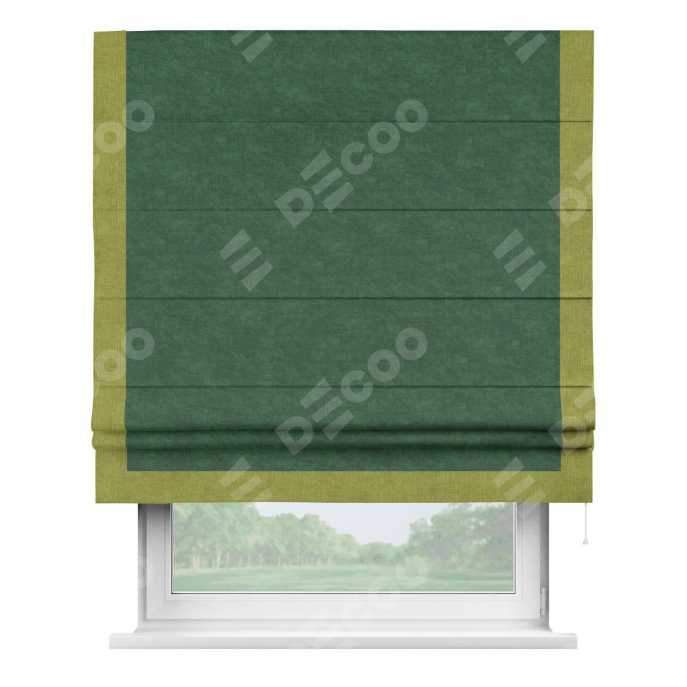 Римская штора «Кортин» для проема, канвас тёмно-зелёный, с кантом Виктория