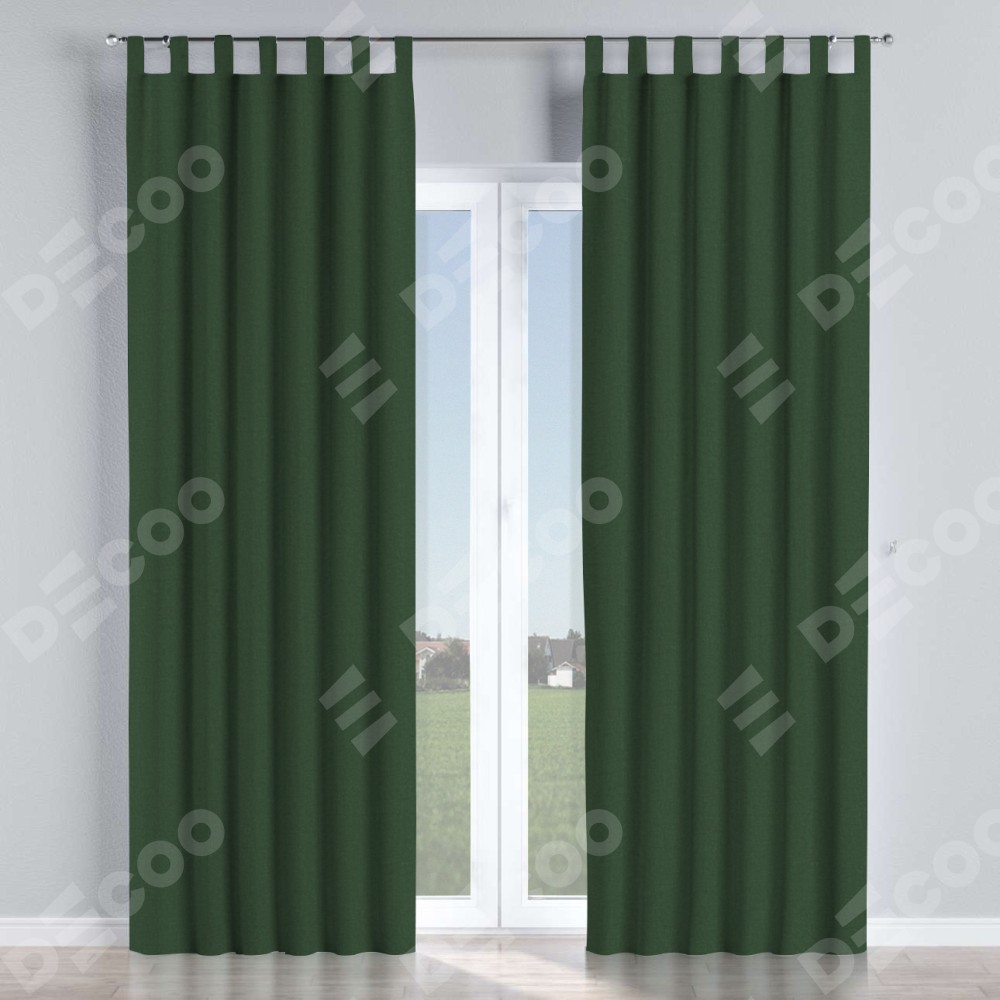 Комплект прямых штор, от производителя «Cortin», пошиты из ткани канвас глубокий зелёный, артикул ткани v-588. Данная модель пошита на петлях, комплектуется на выбор круглым карнизом и подходит для монтажа на стену или потолок. Прямые шторы на петлях шьются по стандарту с коэффициентом 1/2 (на 100 см. ширины проёма 200 см. ширины ткани), отличительным преимуществом данной модели является простой способ монтажа. Достаточно повесить ее на трубу и штора готова!
