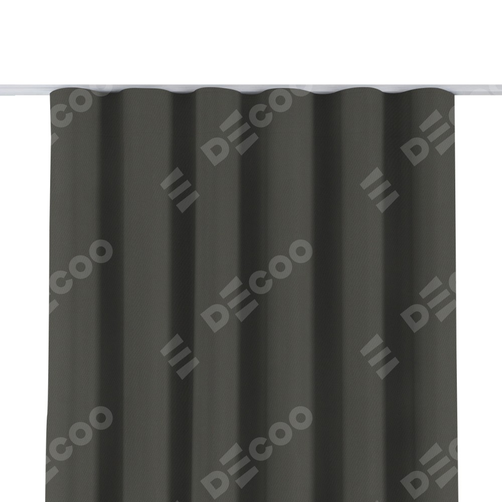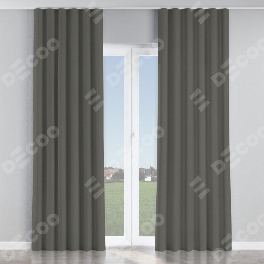 Комплект прямых штор, от производителя «Cortin», пошиты из ткани блэкаут однотонный тёмно-серый, артикул ткани 91570. С изнаночной стороны в верхней части штор пристрачивается шторная лента с декоративными складками «Волна». Для создания элегантных складок прямые шторы шьются по стандарту с коэффициентом 1:2 (на 100 см. ширины проёма 200 см. ширины ткани).