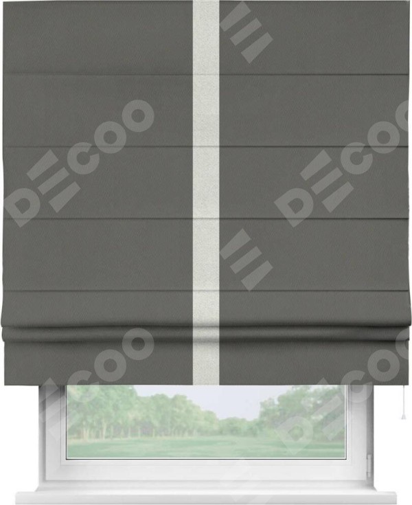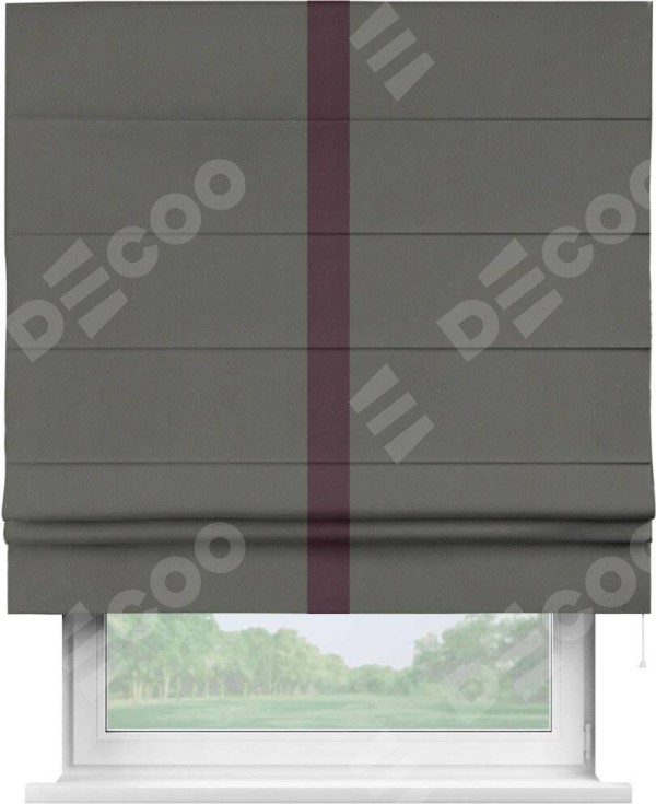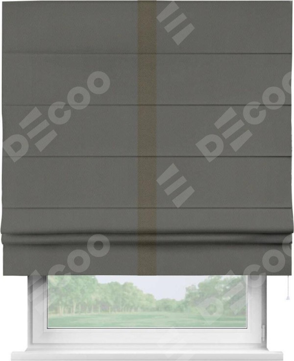 Римская штора «Кортин» для проема, блэкаут однотонный тёмно-серый с кантом Хайвэй