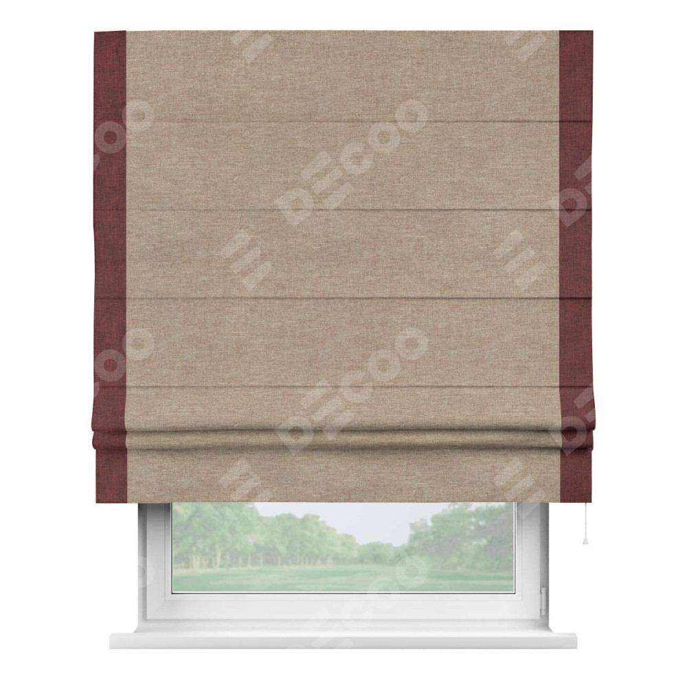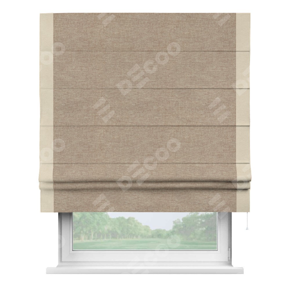 Римская штора «Кортин» с кантом Стрим Дуо, для проема, ткань лён кашемир коричневый