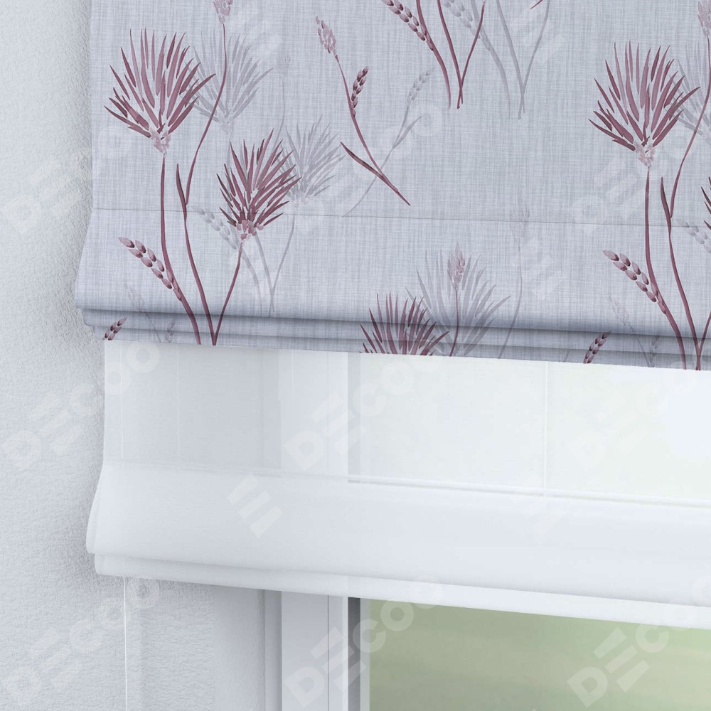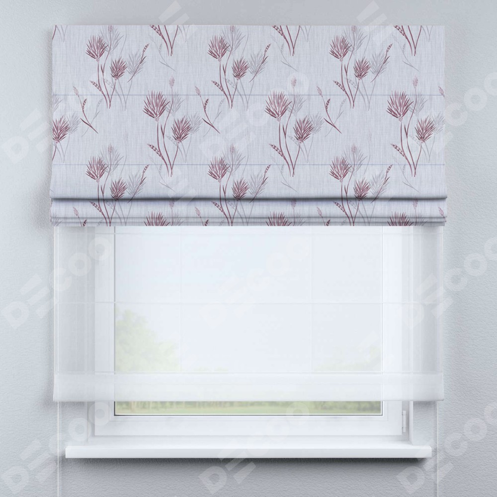 Двойная римская штора «День-ночь» от производителя Cortin предназначена для использования в проёмах. Эта штора уникальна тем, что состоит из двух полотен. На лицевой стороне находится блэкаут с нанесением сублимационной печати «Полевые травы серый», обеспечивающий эффективное затемнение. В комплект также входит вторая ткань — легкий белый тюль (артикул: V-01), который добавляет изящества и легкости оформлению окна. Кроме того, доступны и другие разновидности ткани тюль, выбор которых доступен по ссылке .