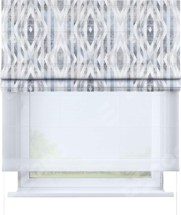 Двойная римская штора «День-ночь» от производителя Cortin предназначена для использования в проёмах. Эта штора уникальна тем, что состоит из двух полотен. На лицевой стороне находится блэкаут с нанесением сублимационной печати «Триумф», обеспечивающий эффективное затемнение. В комплект также входит вторая ткань — легкий белый тюль (артикул: V-01), который добавляет изящества и легкости оформлению окна. Кроме того, доступны и другие разновидности ткани тюль, выбор которых доступен по ссылке .