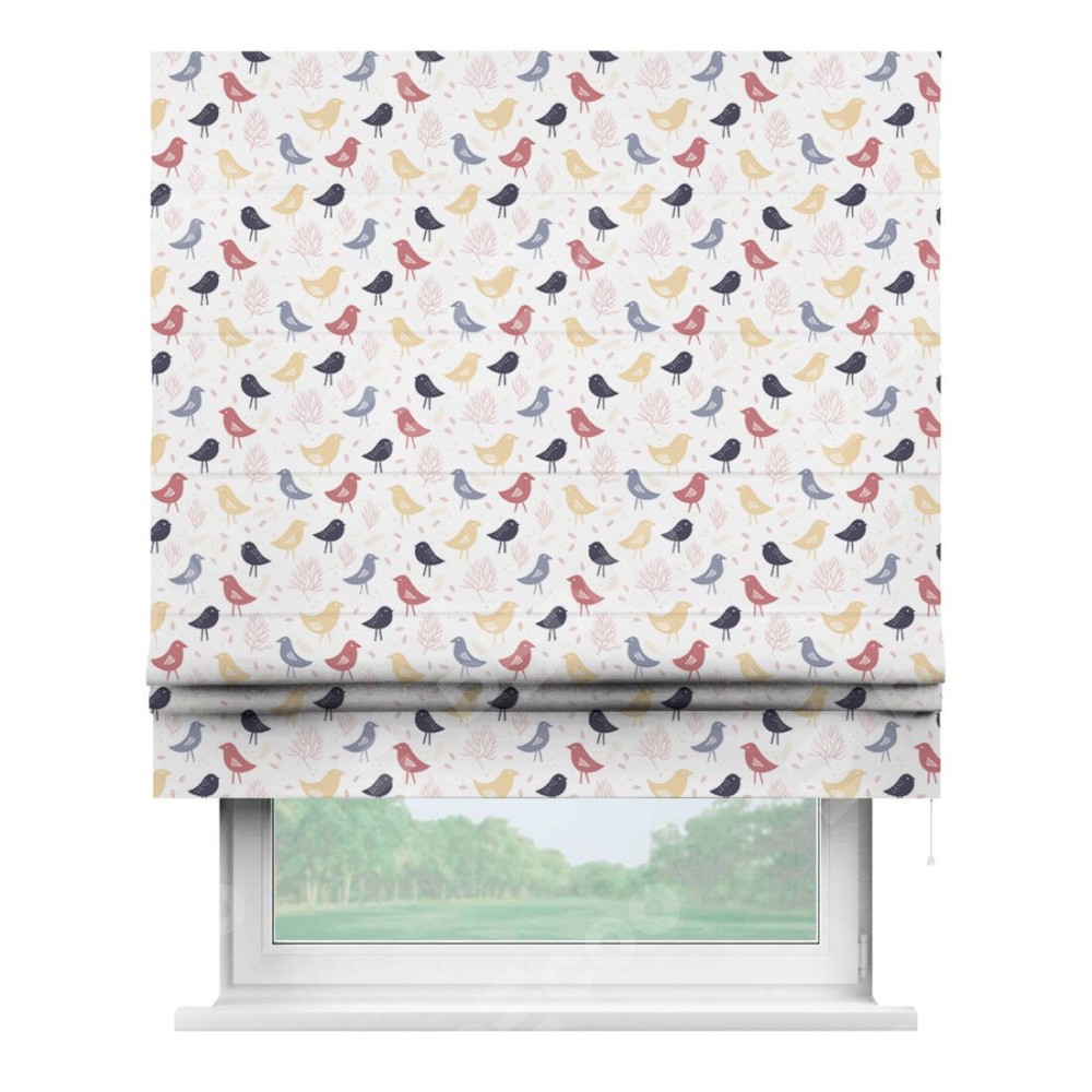 Римская штора «Кортин» для проема «Цветные птички»