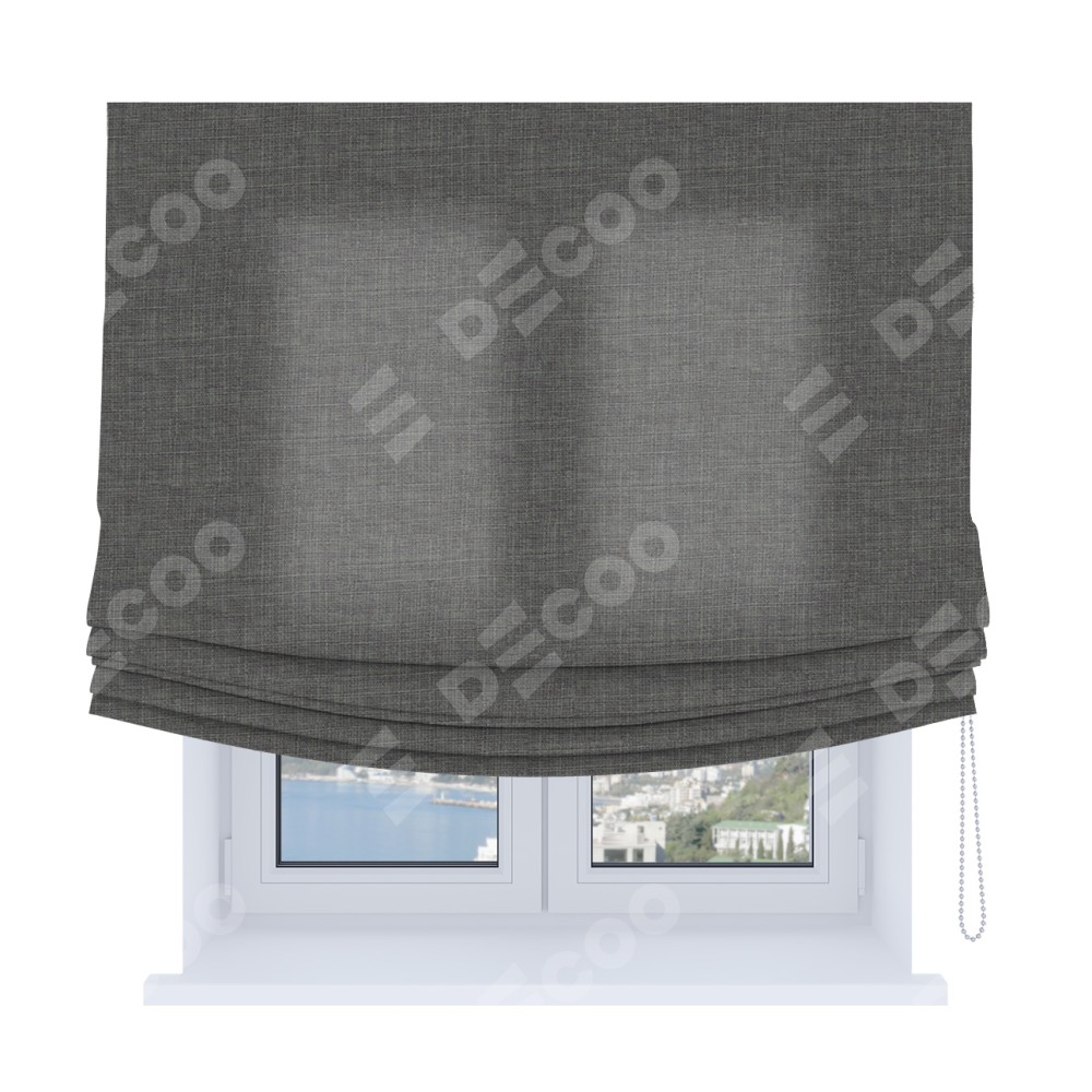 Римская штора «Кортин», лён тёмно-серый, Soft с мягкими складками