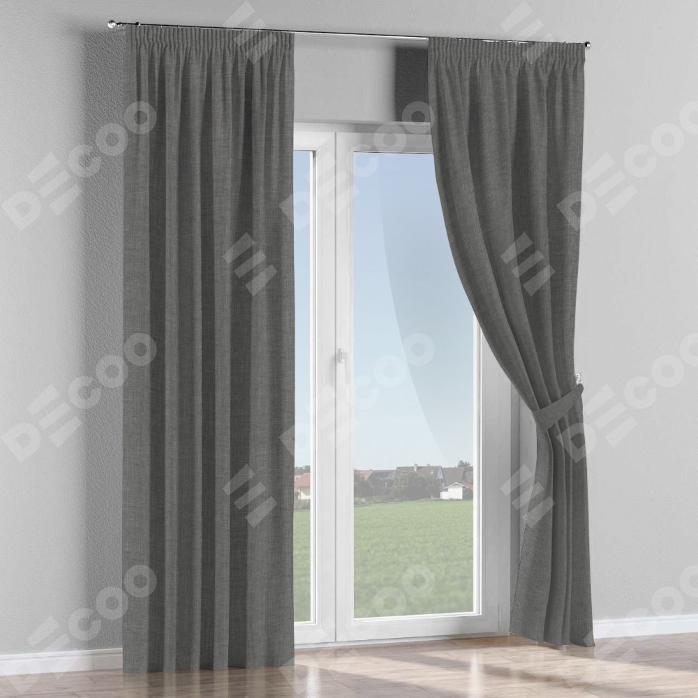 Комплект штор лён тёмно-серый, на тесьме «Карандаш»
