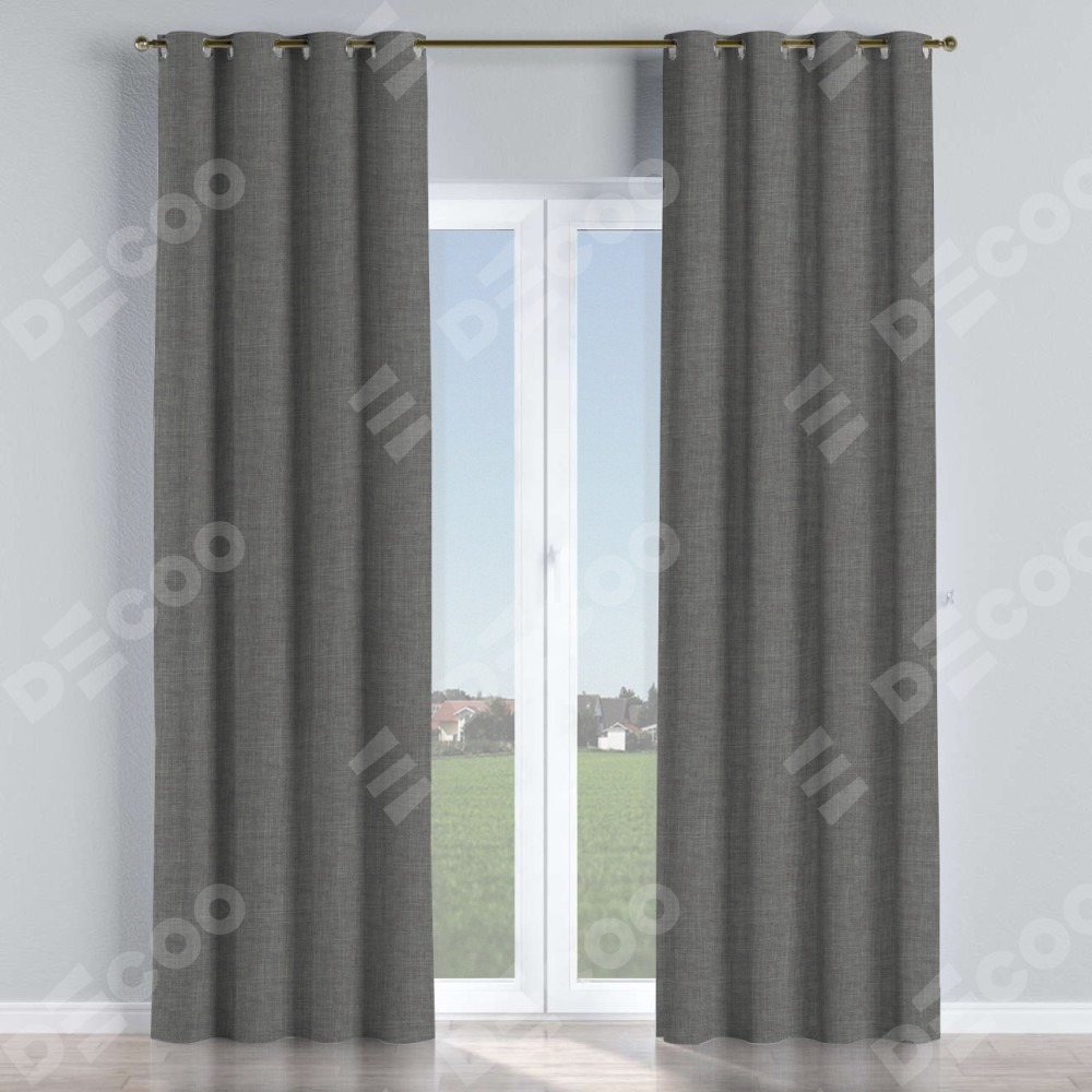 Комплект прямых штор, от производителя «Cortin», пошиты из ткани лён тёмно-серый, артикул ткани 7441. Данная модель пошита на люверсах, комплектуется на выбор круглым карнизом и подходит для монтажа на стену или потолок. Прямые шторы на люверсах шьются по стандарту с коэффициентом 1/2 (на 100 см. ширины проёма 200 см. ширины ткани), отличительным преимуществом данной модели является простой способ монтажа. Достаточно повесить ее на трубу и штора готова!