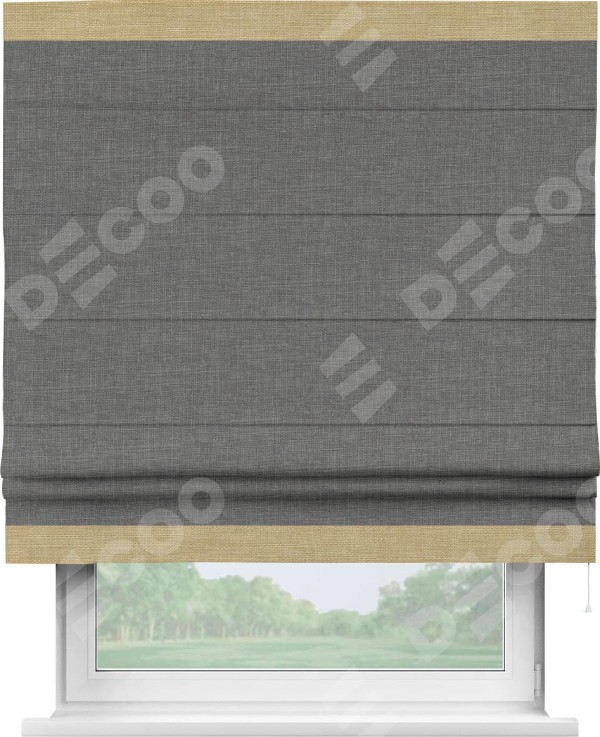 Римская штора «Кортин» с кантом Горизонт, для проема, лён тёмно-серый