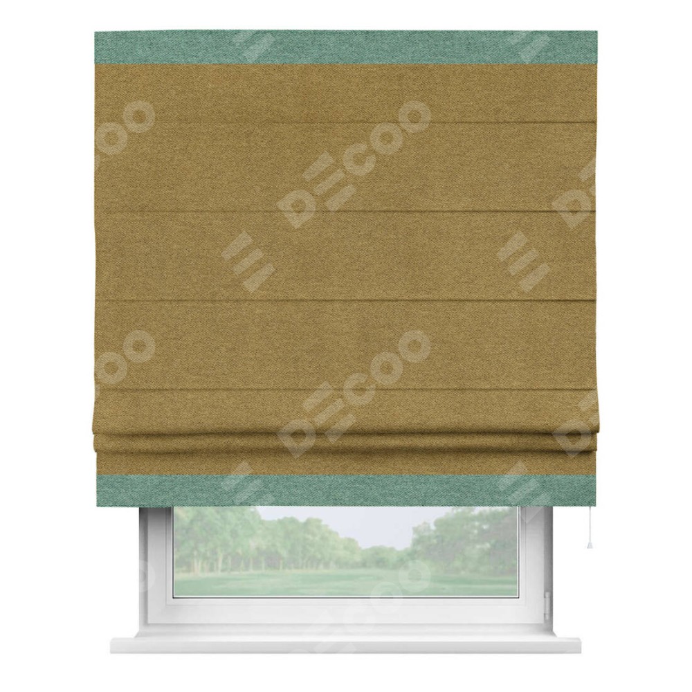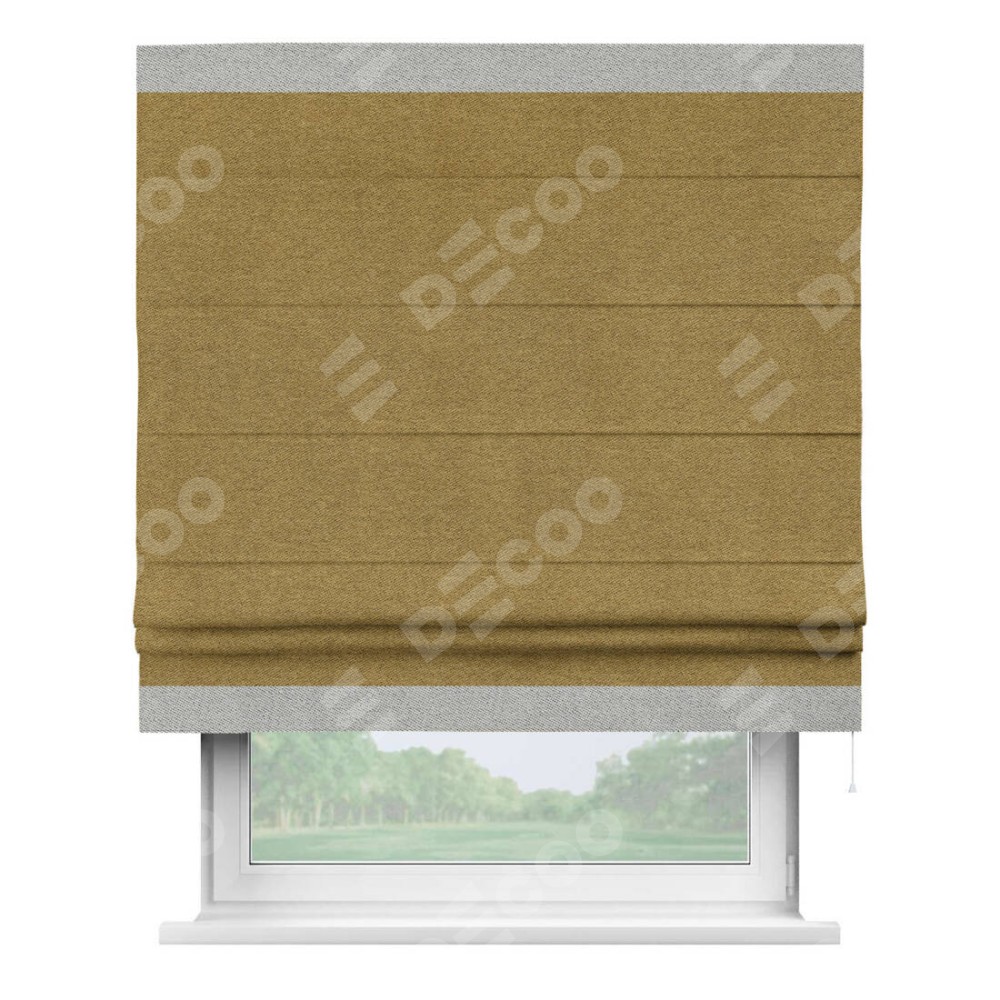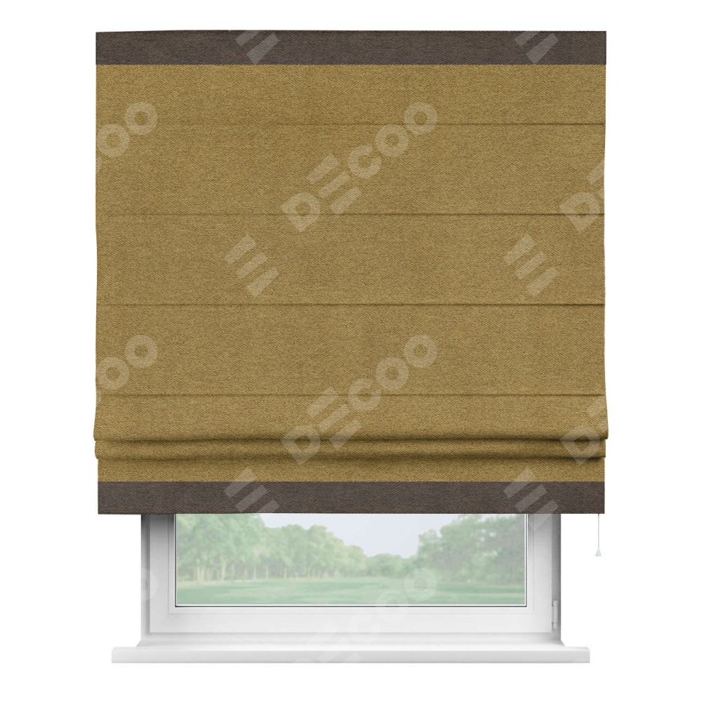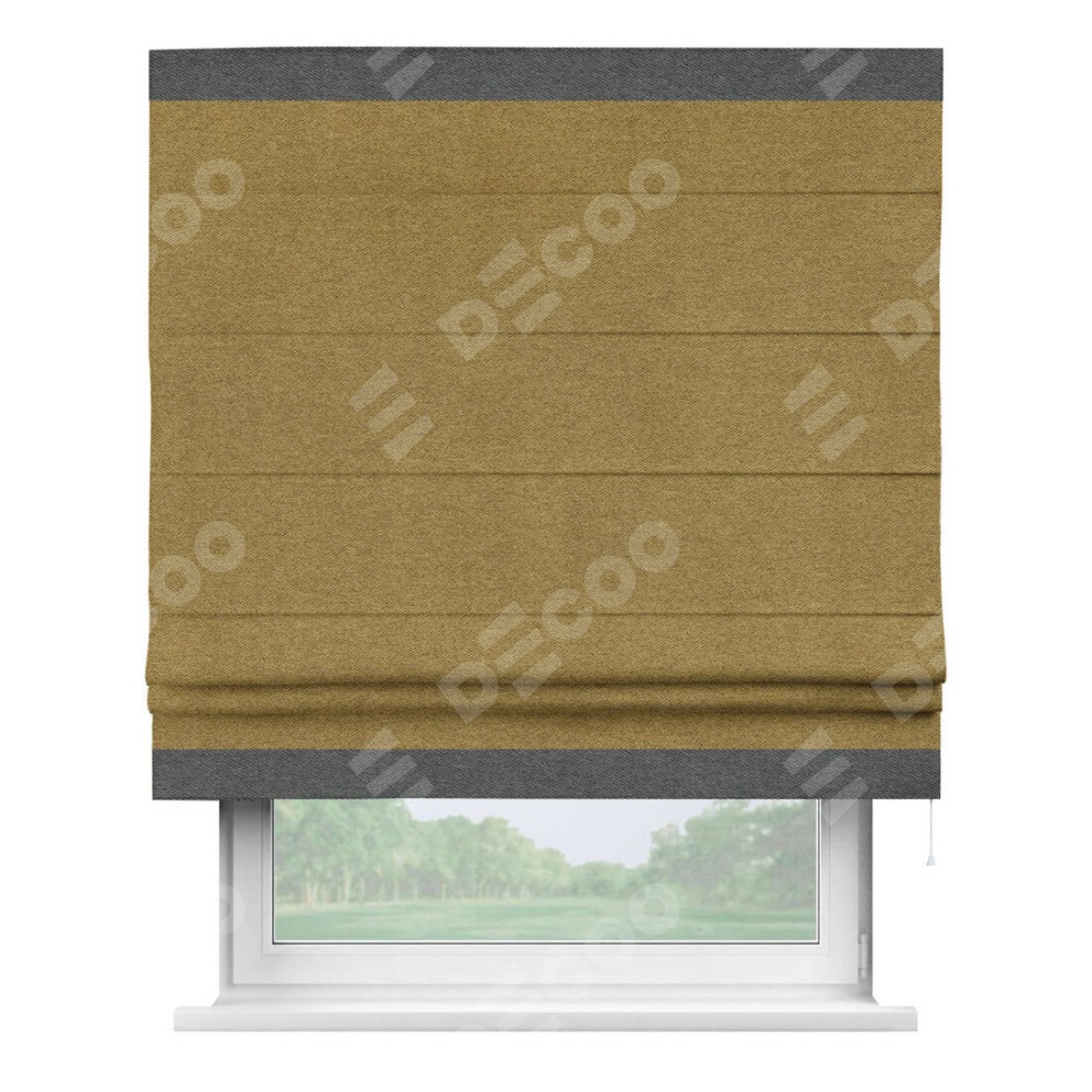 Римская штора «Кортин» с кантом Горизонт, для проема, твид блэкаут горчица